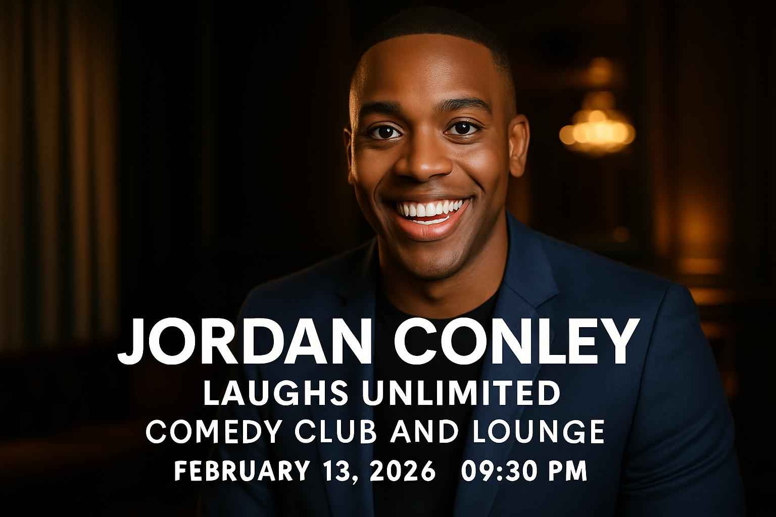 Jordan Conley’s show starts at 9:30 PM on February 13, 2026 at Laughs Unlimited Comedy Club and Lounge in Sacramento.