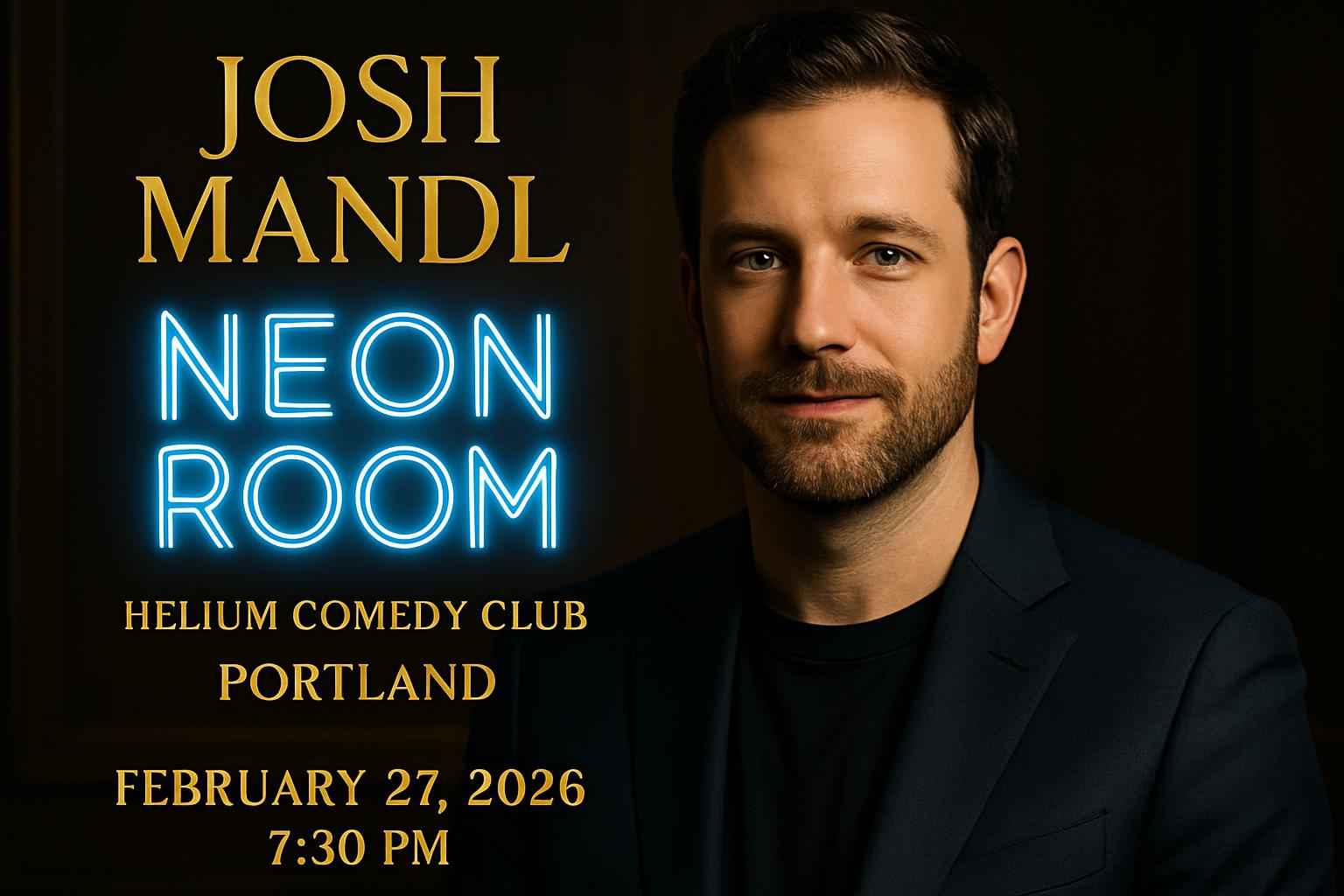 Josh Mandl brings his signature Neon Room act to Helium Comedy Club – Portland located at 1510 SE 9th Ave Portland OR 97214. Doors open at 0630 PM with the show starting at 0730 PM on February 27 2026. Expect an energetic night of stand-up comedy in one of the best comedy clubs in Oregon. Early arrival is recommended for best seating.