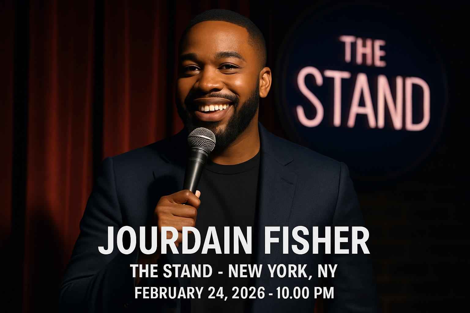 Experience top-tier stand-up comedy at Jourdain Fisher – The Stand in New York NY on February 24 2026 at 10:00 PM. Secure exclusive promo codes and save on tickets through RSVP Event Agency. This show is a high-demand comedy event located at The Stand NYC a premier comedy club in Manhattan. Act now for access to verified discount codes and the latest event details.