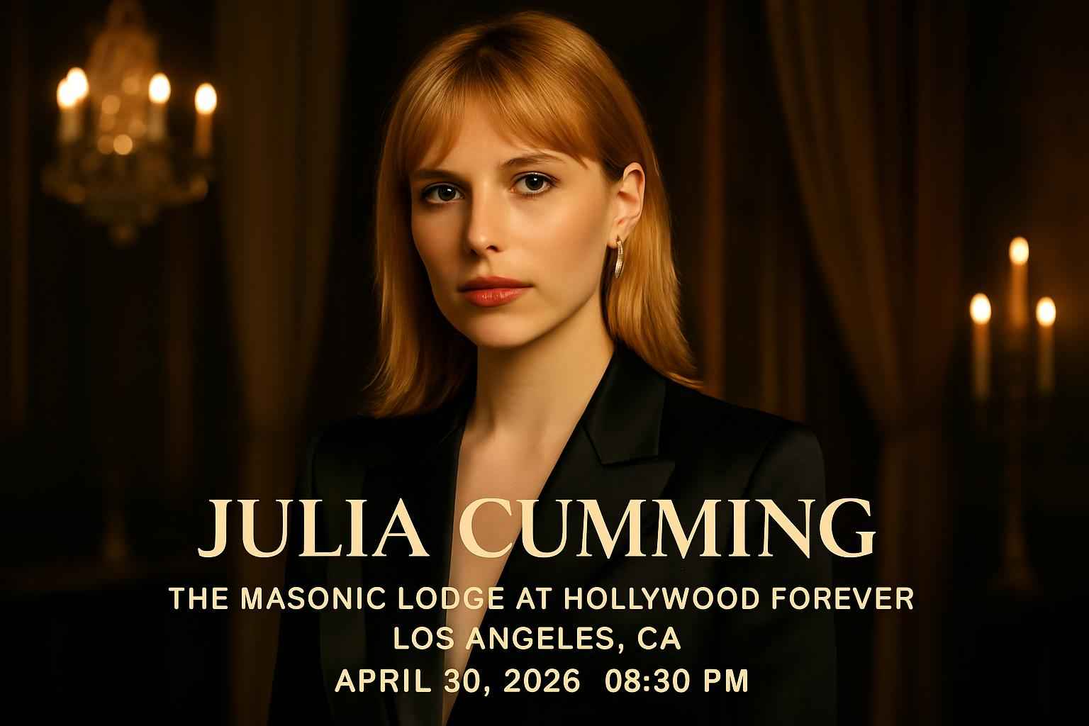Julia Cumming brings her signature style to The Masonic Lodge at Hollywood Forever on April 30 2026 at 0830 PM. Located in the heart of Los Angeles this historic venue offers a unique concert experience for fans searching for live music near Hollywood. Find complete ticket pricing seating charts and entry requirements to plan your night with confidence. RSVP Event Agency ensures secure ticketing and the latest event details for all Los Angeles live performances.