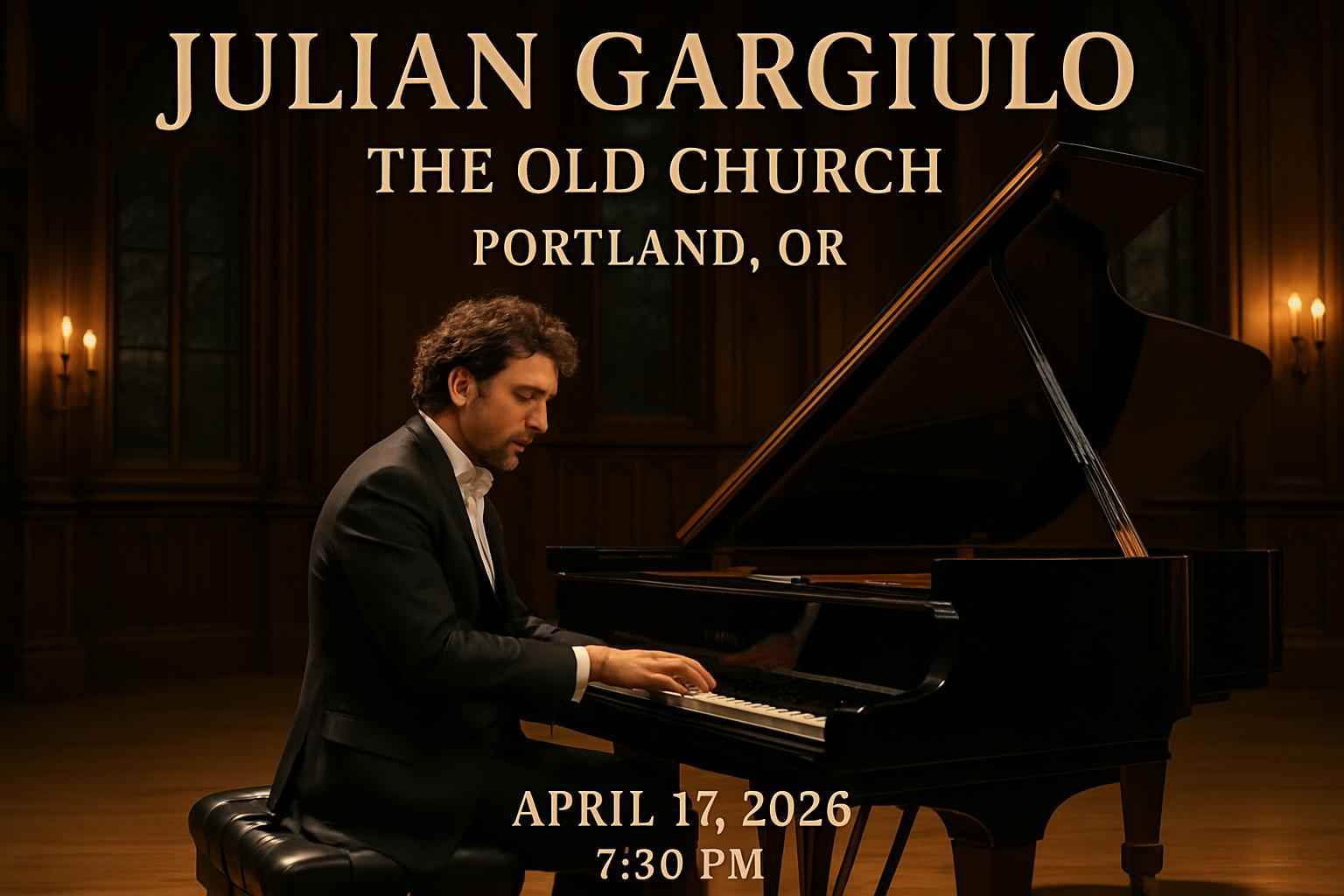Experience the artistry of Julian Gargiulo live at The Old Church in Portland OR on April 17 2026 at 0730 PM. This exclusive classical piano concert offers a rare opportunity for Portland music lovers to enjoy a captivating evening of world-class performance in one of the citys most iconic venues. Secure your spot for this special event and discover why Julian Gargiulo is celebrated worldwide for his virtuosity and engaging stage presence.