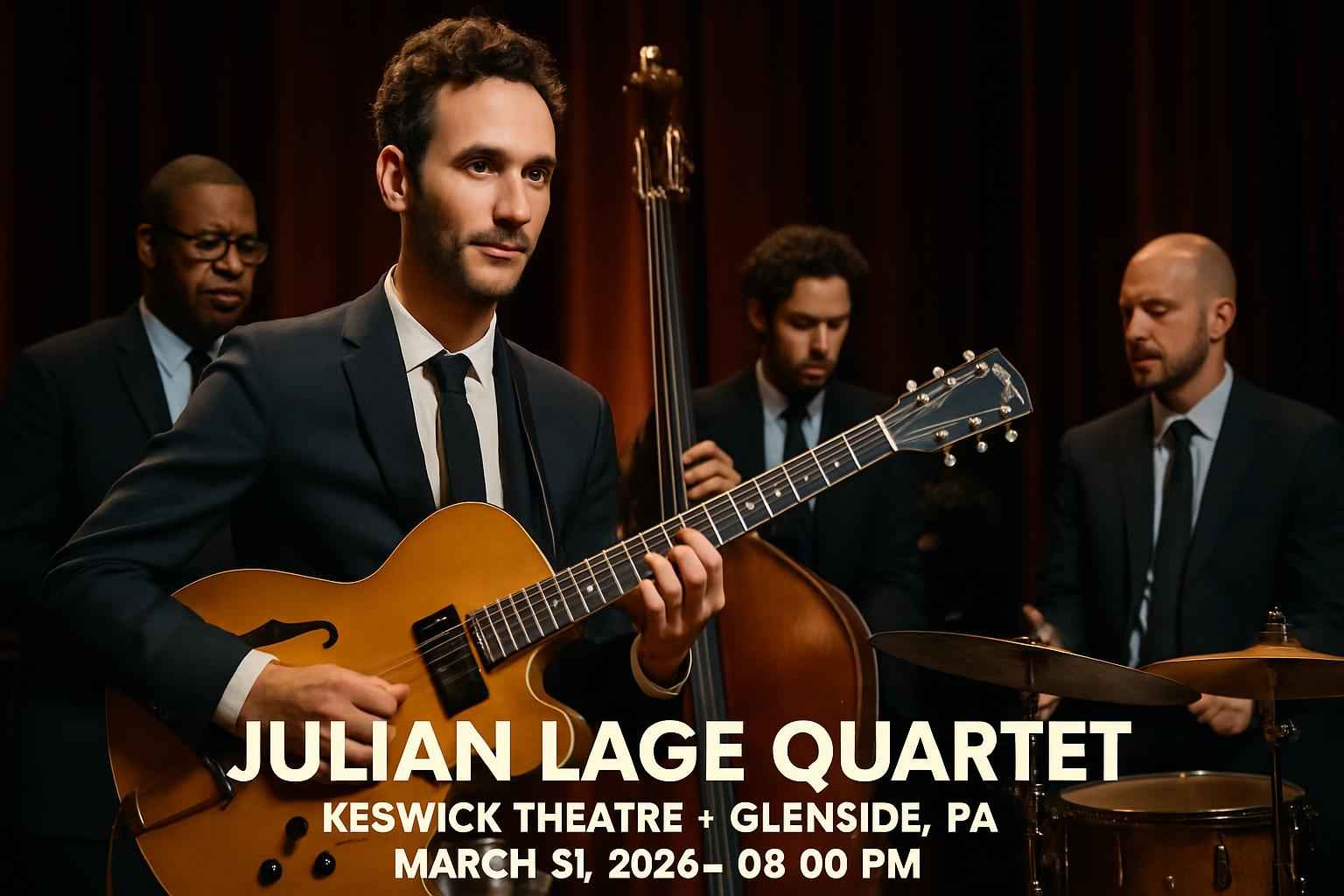 Julian Lage Quartet performs at Keswick Theatre Glenside PA offering an evening of contemporary jazz and improvisational mastery. The concert begins at 800 PM on March 31 2026. Fans and music lovers can expect a blend of original compositions and jazz standards performed by acclaimed musicians in a stunning acoustical setting. Get the best seats and save with verified ticket promo codes.