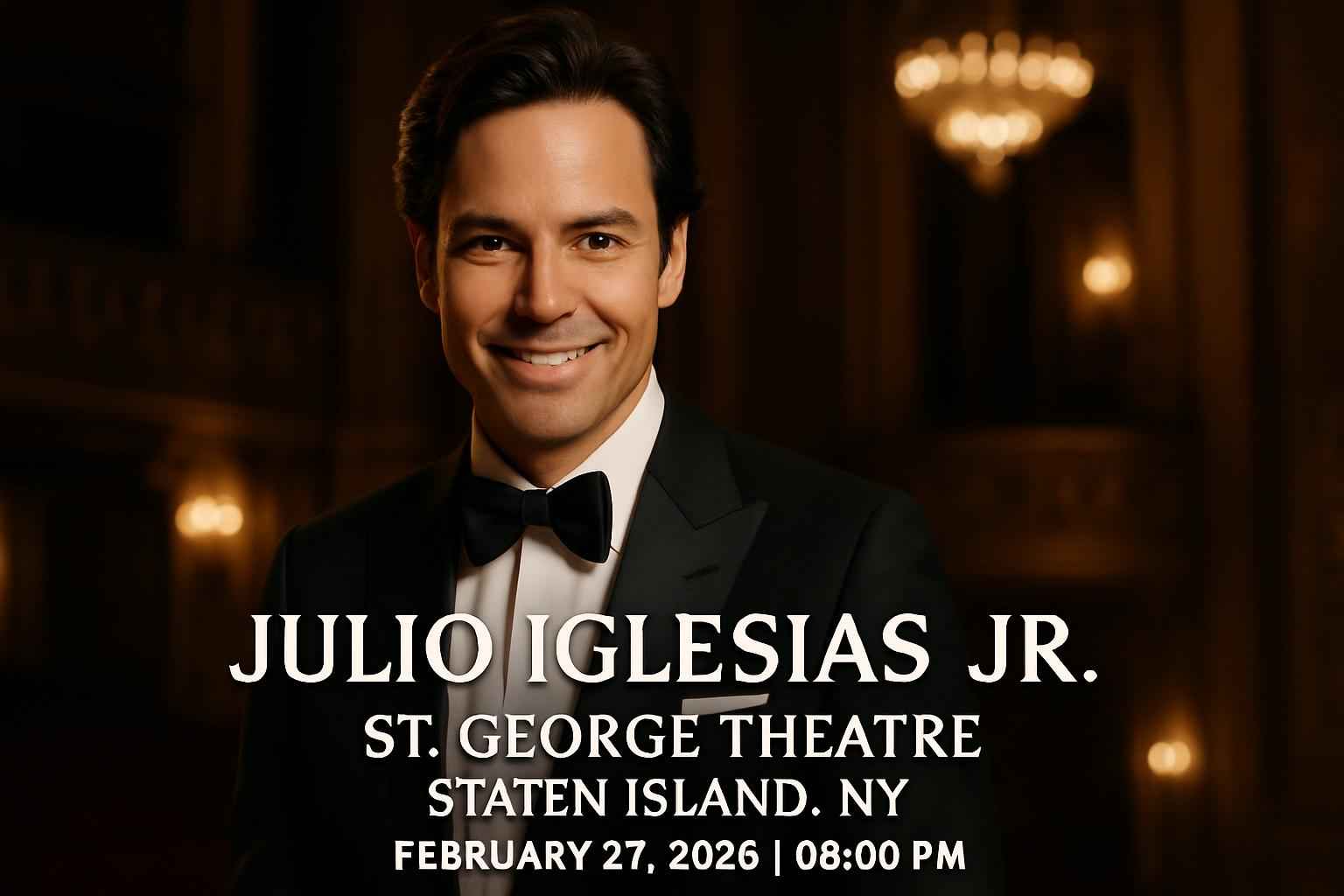 Julio Iglesias Jr. performs at St. George Theatre Staten Island NY on February 27 2026 with the show starting at 8:00 PM.