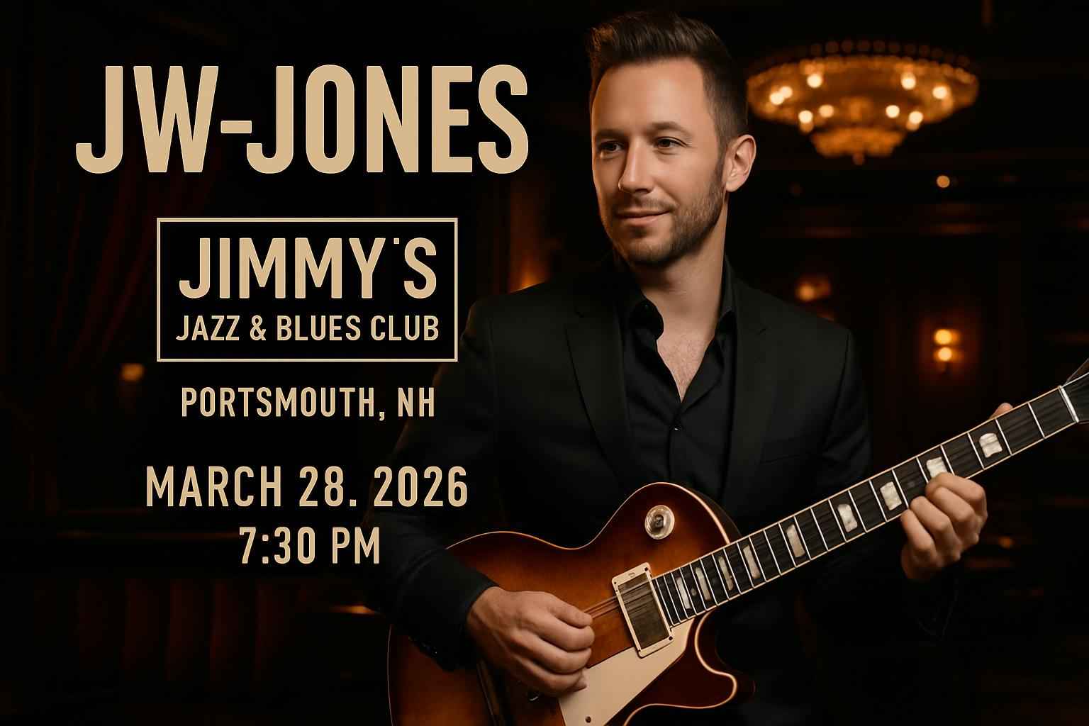 Experience dynamic live music at the JW-Jones concert at Jimmys Jazz and Blues Club in Portsmouth NH on March 28 2026 at 0730 PM. This exclusive event brings award-winning blues guitarist JW-Jones to one of New Englands top live music venues. Secure verified tickets with RSVP Event Agency and unlock exclusive promo codes for the best value on seats. Enjoy premium sound and immersive jazz and blues entertainment in the heart of Portsmouth.
