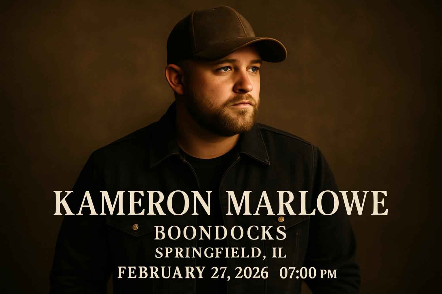 Kameron Marlowe performs at Boondocks Springfield IL on February 27 2026 starting at 7 PM.