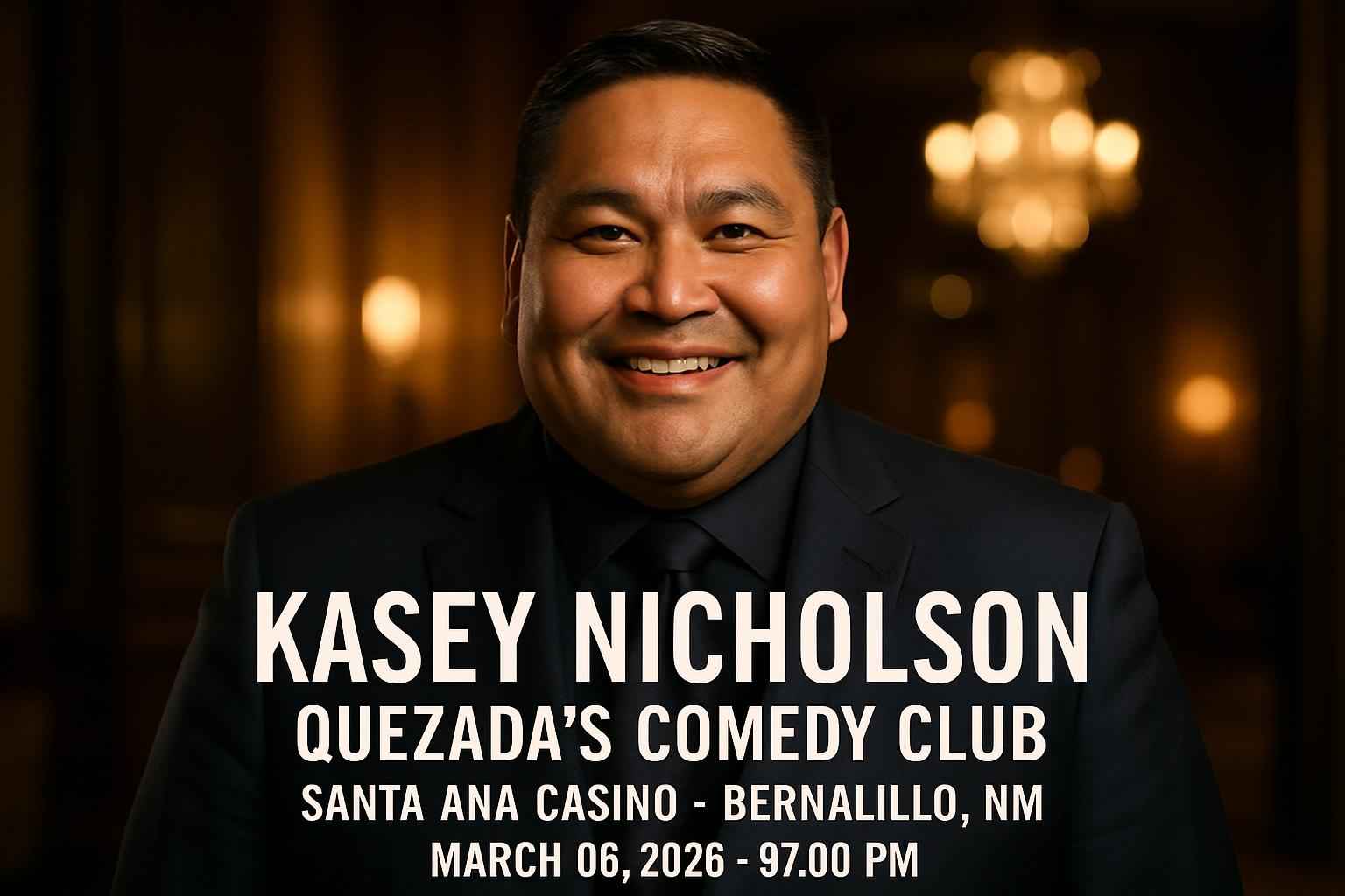 Experience Kasey Nicholson – Quezada’s Comedy Club at Santa Ana Casino in Bernalillo NM on March 06 2026 at 0700 PM for an evening filled with laughter and unforgettable moments. This event brings top-tier stand-up comedy to one of New Mexico’s most popular entertainment venues. Secure verified tickets and exclusive promo codes from RSVP Event Agency for the best value on your comedy night.