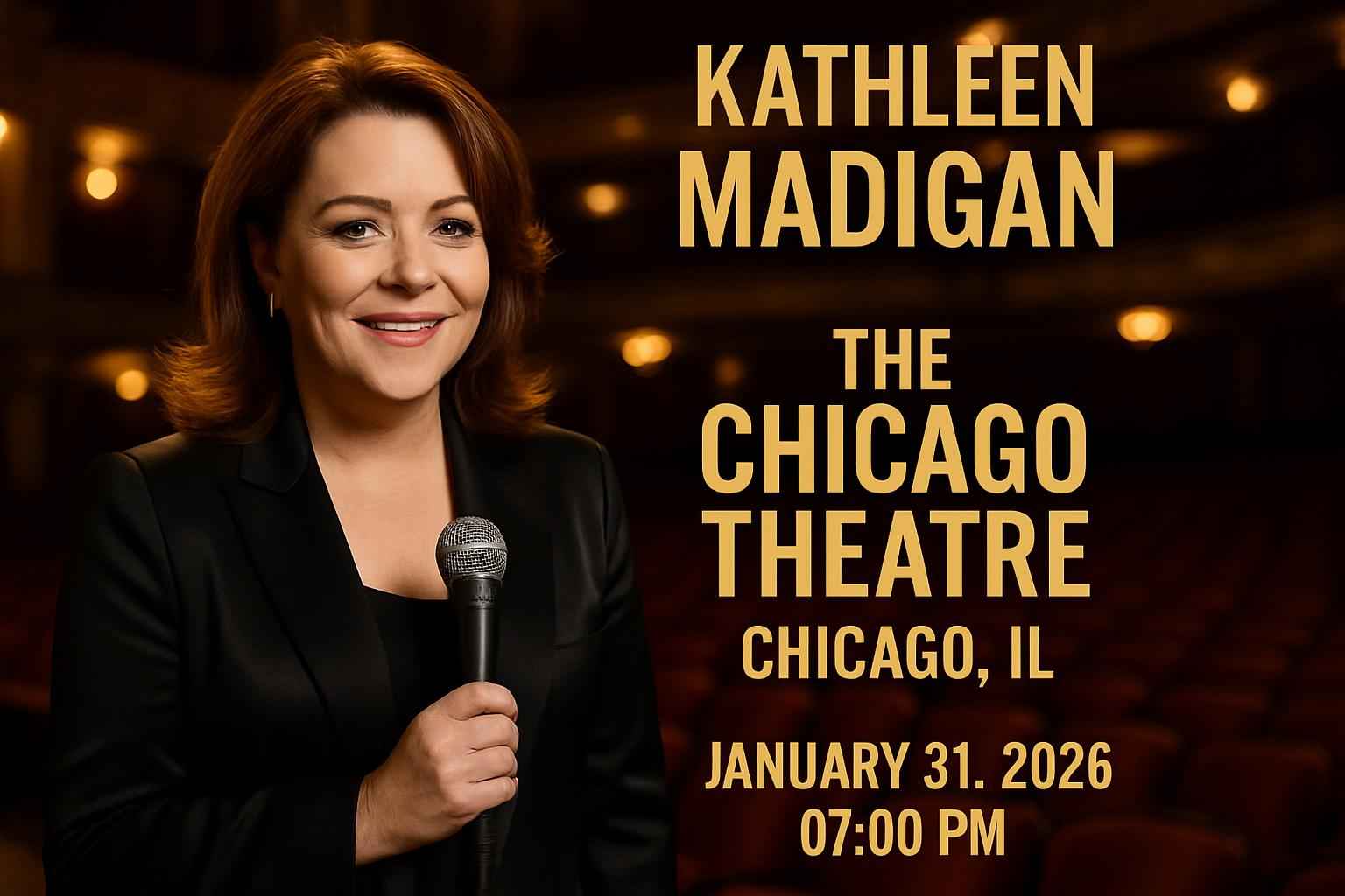 Kathleen Madigan brings her nationally acclaimed comedy tour to The Chicago Theatre on January 31 2026 at 7 PM. This one-night special event features new material and sharp wit from one of Americas most celebrated stand-up comedians. Located in the heart of downtown Chicago The Chicago Theatre offers a world-class entertainment experience with convenient access and premium amenities. Secure your tickets early to guarantee the best seats and savings.