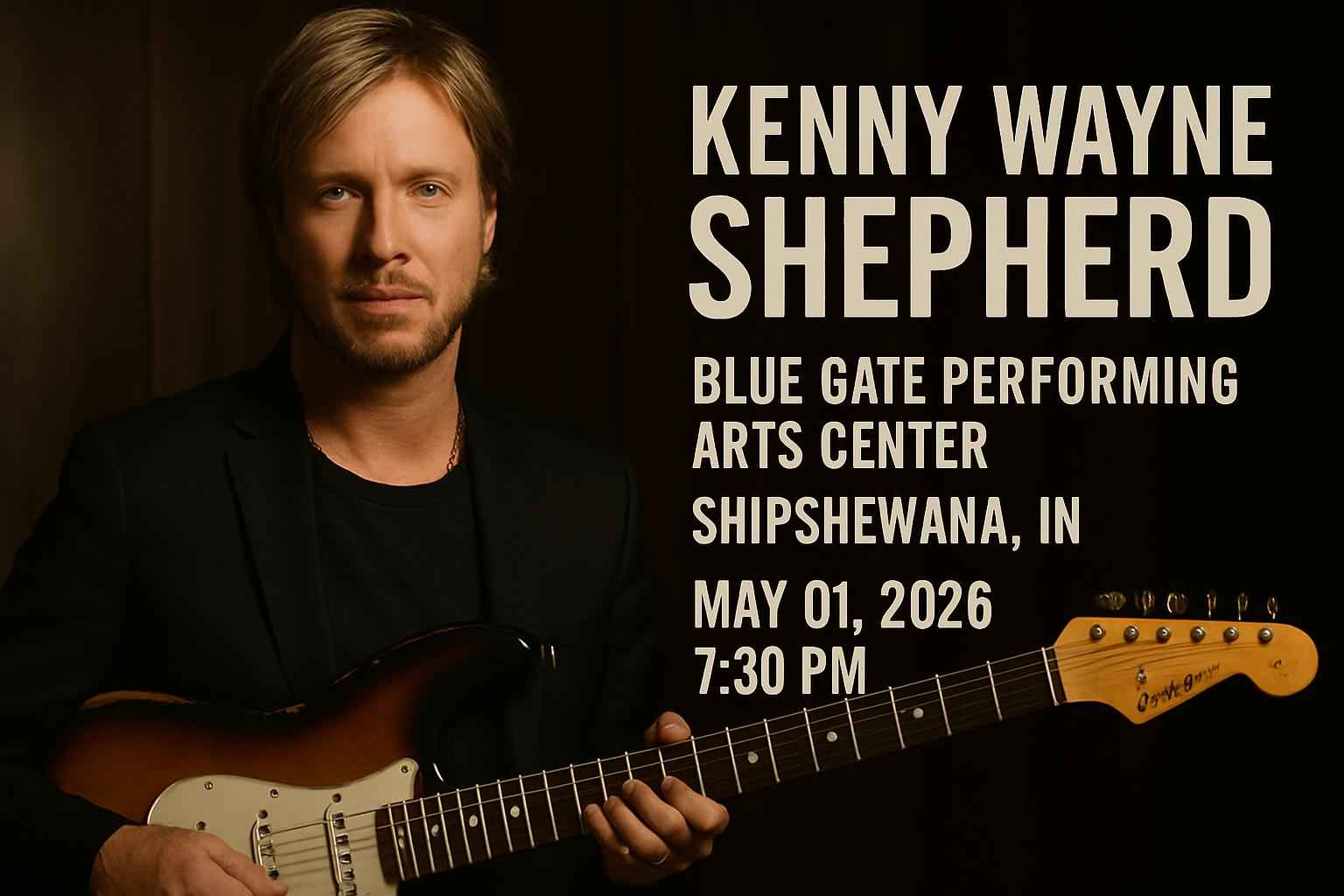 The Kenny Wayne Shepherd concert begins at 0730 PM on May 01 2026 at Blue Gate Performing Arts Center in Shipshewana IN.