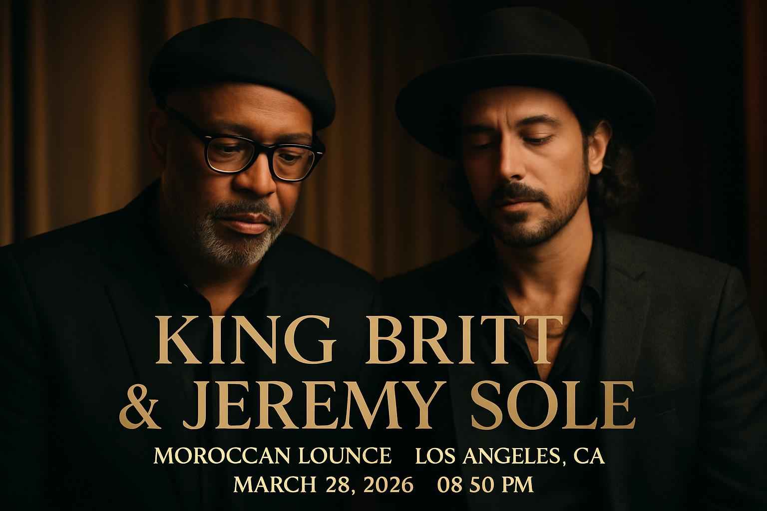 King Britt and Jeremy Sole perform at Moroccan Lounge Los Angeles on March 28 2026 starting at 9:30 PM.
