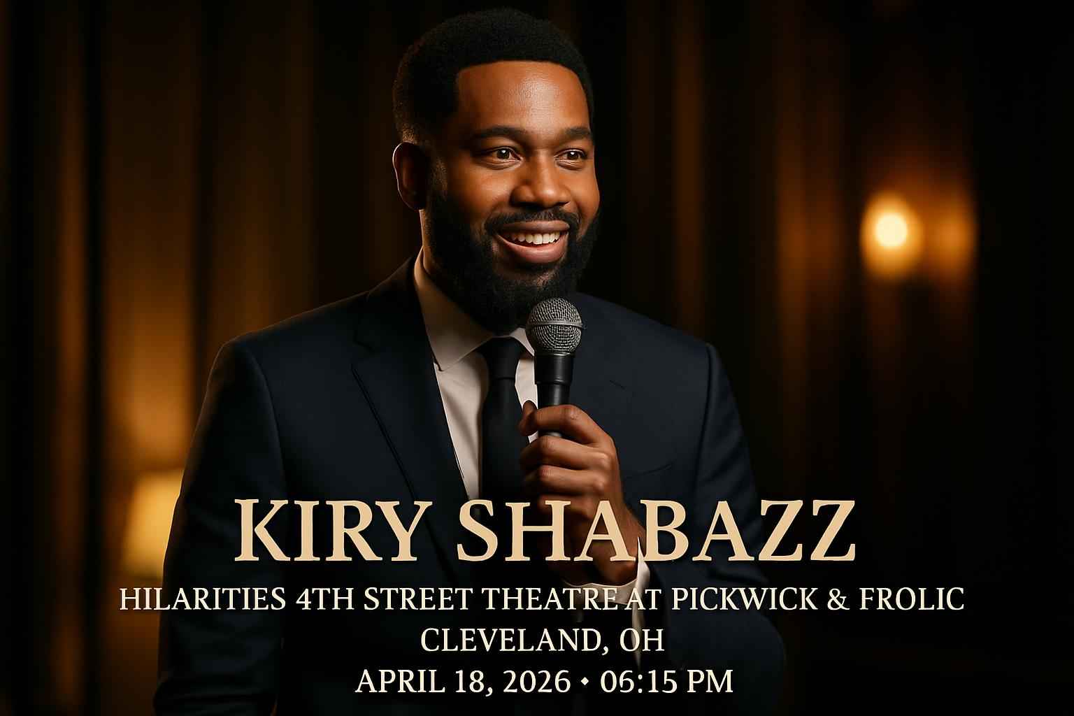 Experience a night of comedy in Cleveland with Kiry Shabazz live at Hilarities 4th Street Theatre At Pickwick & Frolic on April 18 2026 at 09:15 PM. Secure your exclusive Kiry Shabazz coupon code through RSVP Event Agency today and enjoy top savings on your tickets. This event draws comedy fans from throughout Northeast Ohio for an unforgettable evening at one of Clevelands highest-rated comedy venues.