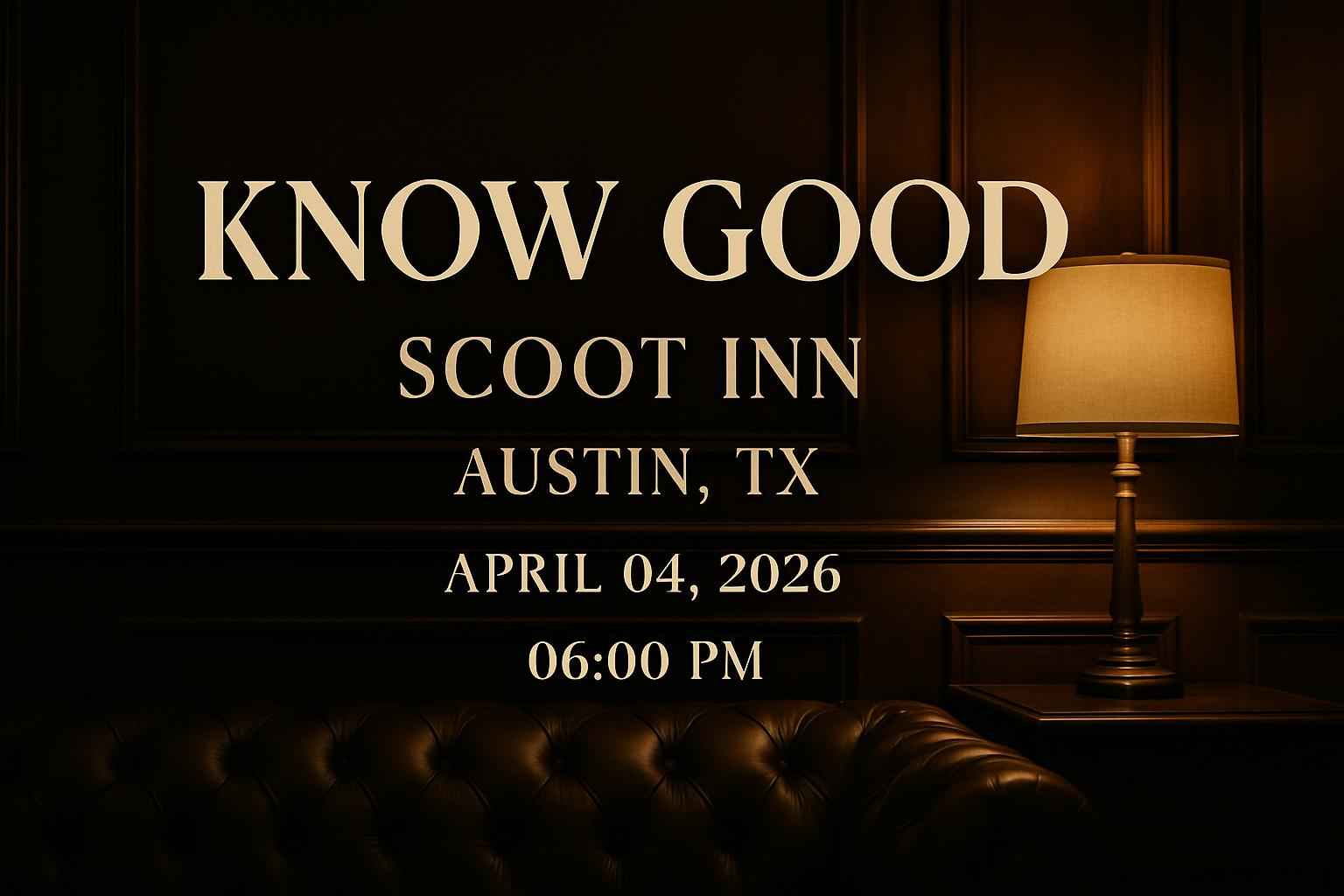Doors for Know Good at Scoot Inn open at 0600 PM on April 04 2026 with music starting shortly after.