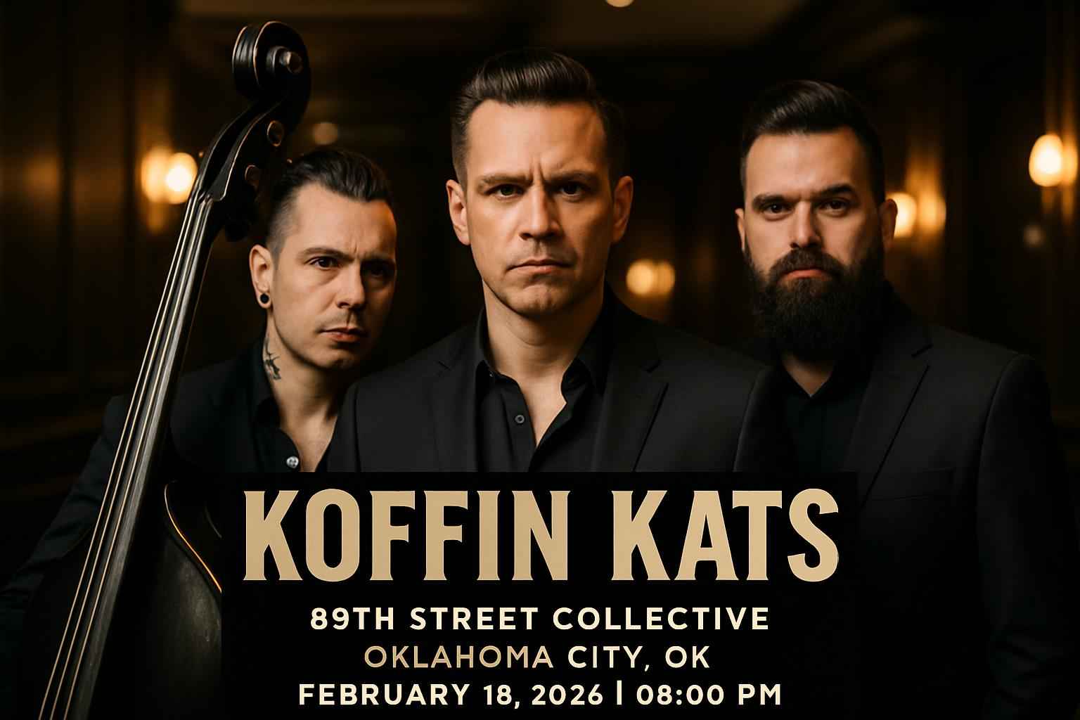 The Koffin Kats show begins at 8 PM on February 18, 2026 at 89th Street Collective in Oklahoma City.