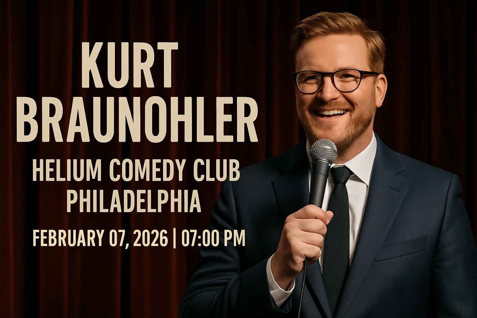 The Kurt Braunohler comedy show at Helium Comedy Club Philadelphia begins at 7 PM on February 7 2026.