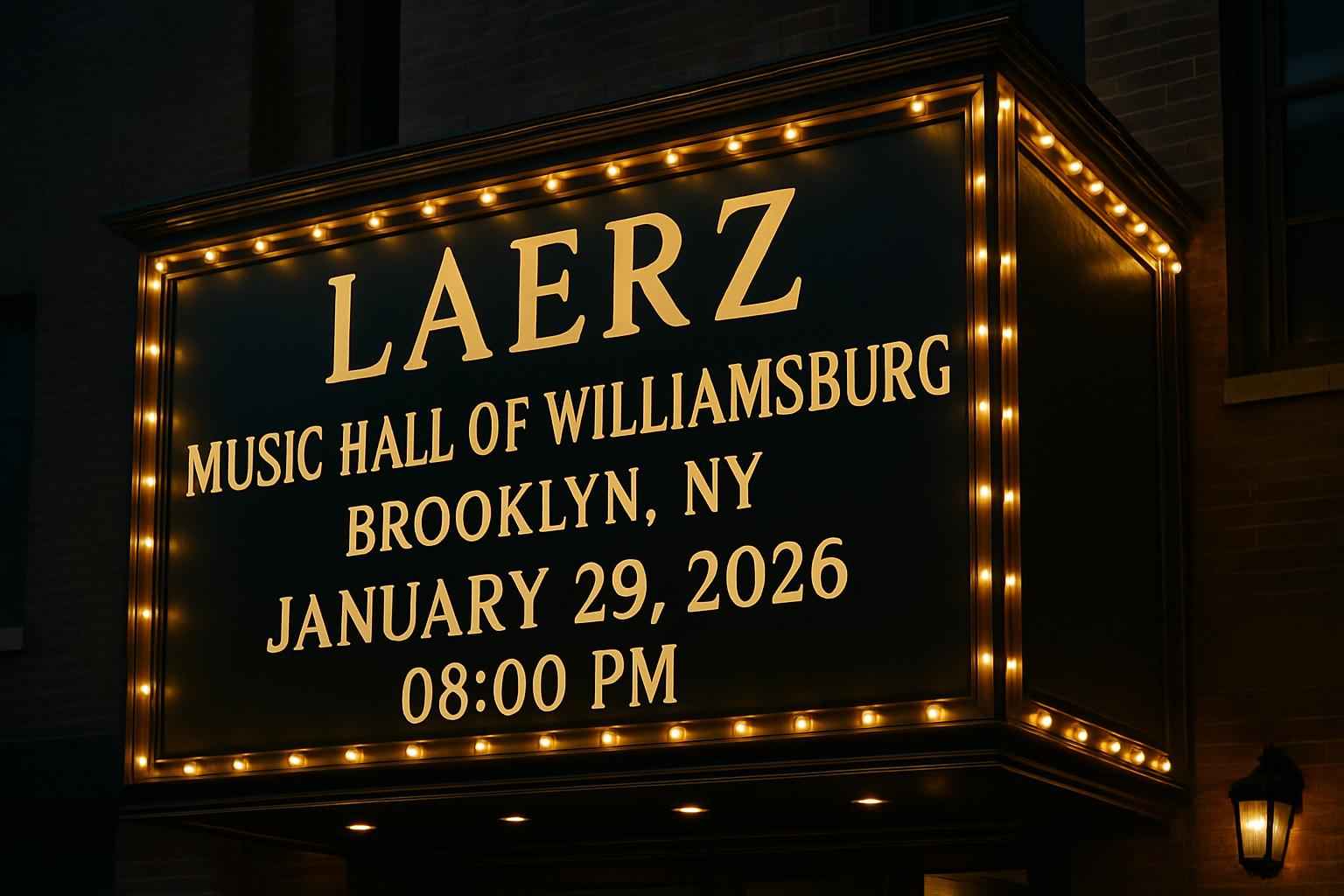 LAERZ begins at 8:00 PM on January 29 2026 at Music Hall Of Williamsburg Brooklyn NY. Doors usually open one hour before showtime.