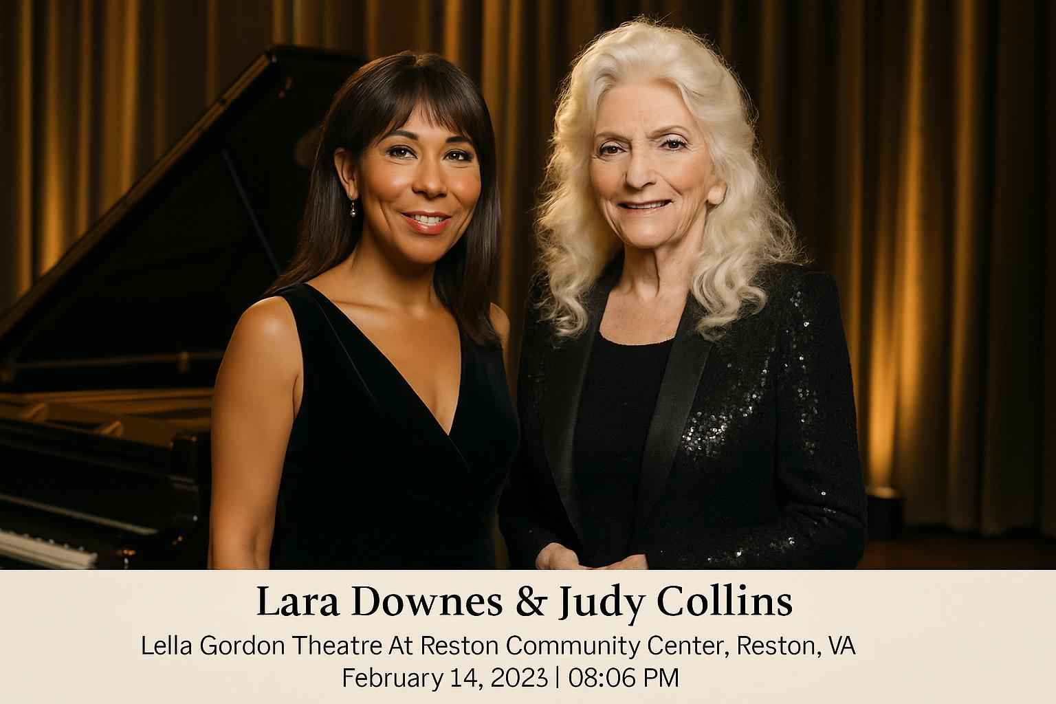 Lara Downes and Judy Collins join forces for a special collaborative concert in Reston VA. Held at the Leila Gordon Theatre at Reston Community Center this event promises an evening of legendary music and storytelling. Doors open at 7 PM and the concert starts at 8 PM. Book discounted seats using promo codes from RSVP Event Agency for a memorable Valentine’s Day celebration.