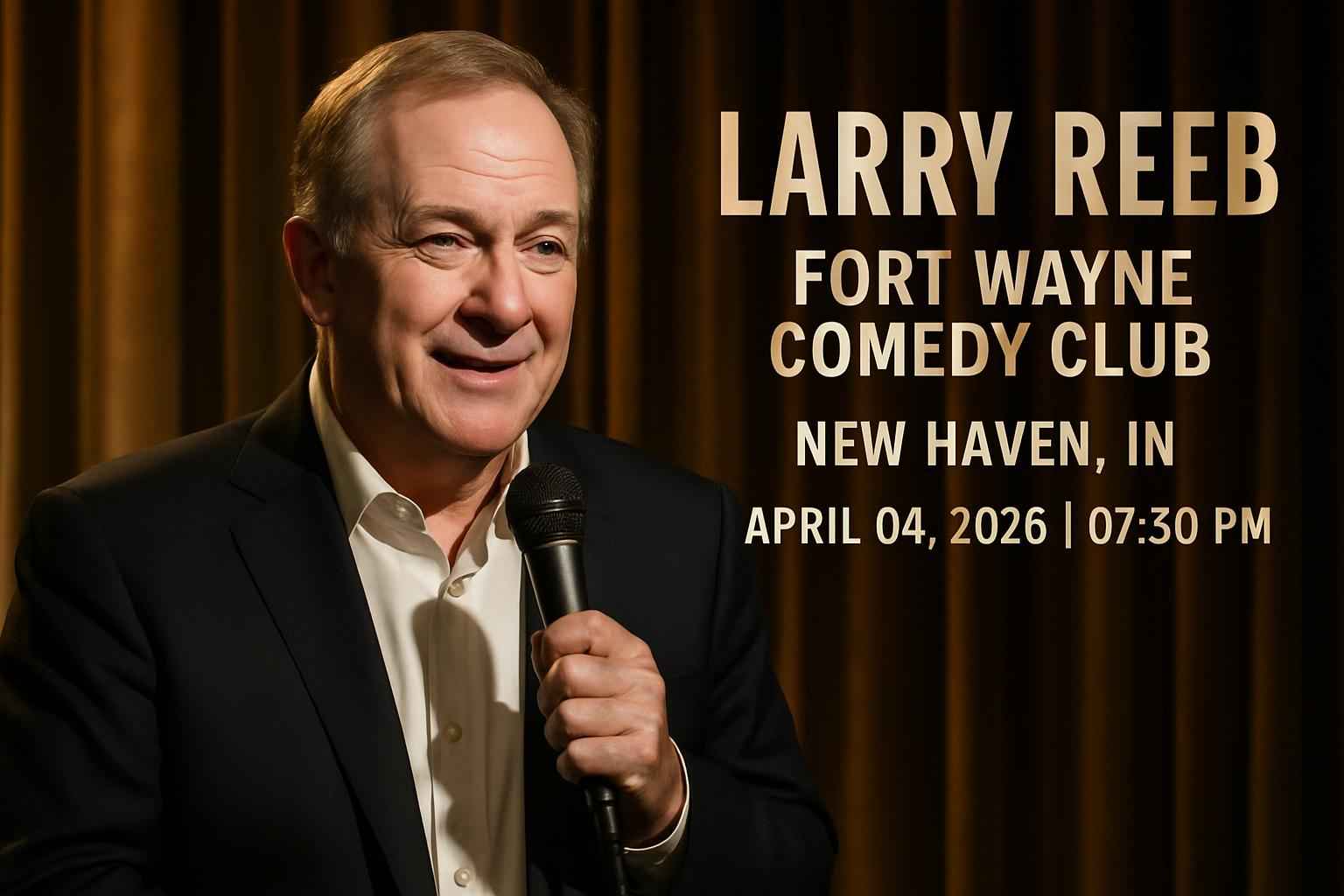 Larry Reeb known for his quick wit and signature comedic style brings laughter to Fort Wayne Comedy Club for one night only. Fans and local comedy lovers can enjoy an interactive performance packed with high-energy jokes and crowd favorites. This event is ideal for date nights group outings and anyone searching for top comedy events in New Haven Indiana.