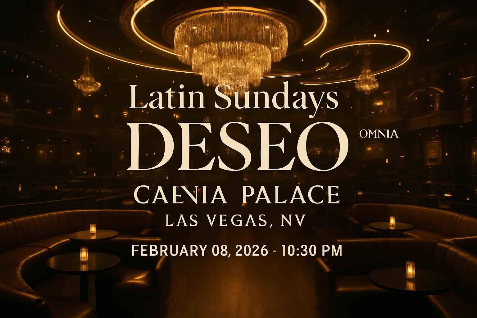 Latin Sundays Deseo begins at 10:30 PM on February 8 2026 at Omnia Nightclub inside Caesars Palace Las Vegas.