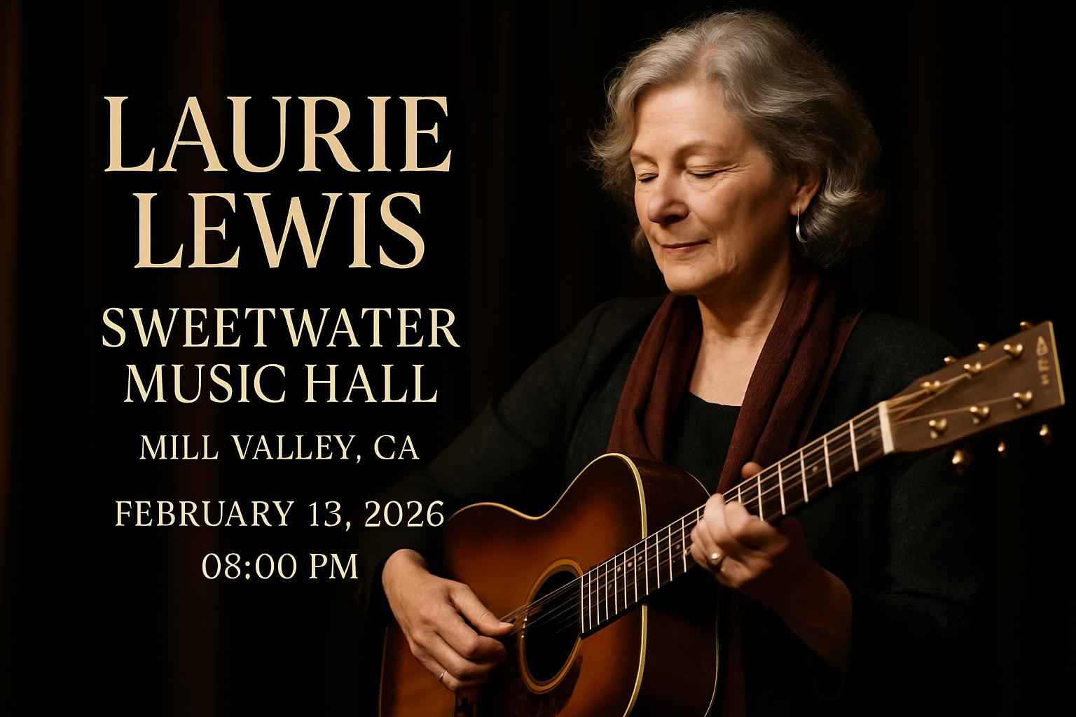 Laurie Lewis performs on February 13 2026 with the concert beginning at 8 PM at Sweetwater Music Hall Mill Valley CA.