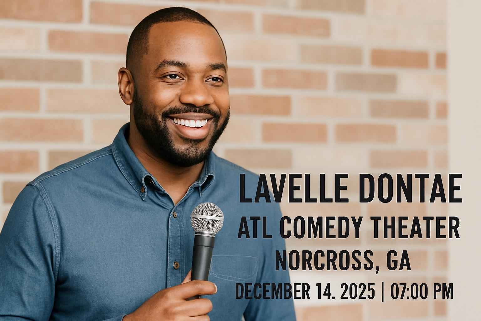 Experience top-tier stand-up with Lavelle Dontae at ATL Comedy Theater in Norcross GA on December 14 2025 at 7 PM. Secure your spot with exclusive RSVP Event Agency promo codes and discover why this show is drawing comedy fans from across Atlanta and Gwinnett County. Attendees searching for Lavelle Dontae ATL Comedy Theater tickets and best coupon codes can access unbeatable deals for a night of laughter and entertainment.