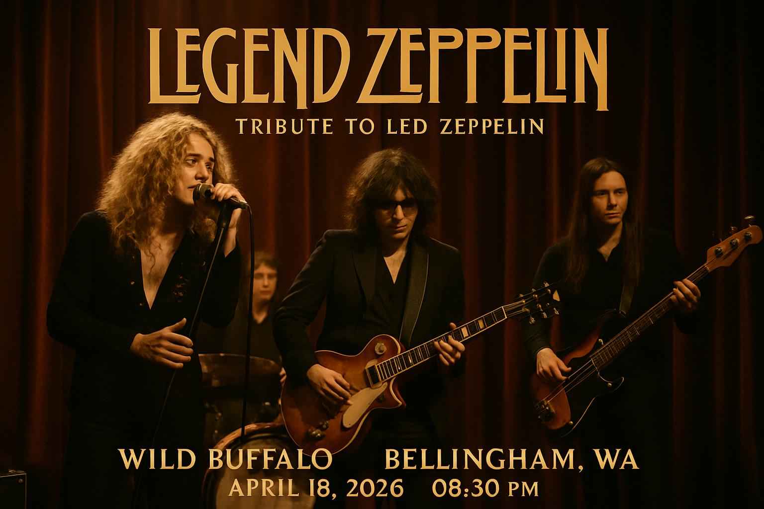 Legend Zeppelin brings the legendary sound of Led Zeppelin to Wild Buffalo Bellingham WA for one night only on April 18 2026. Doors open at 0700 PM with the show starting at 0830 PM. Enjoy immersive lighting and sound in a top-rated local venue. Wild Buffalo is located at 208 W Holly St Bellingham WA near downtown restaurants and hotels for guests seeking a full night out.