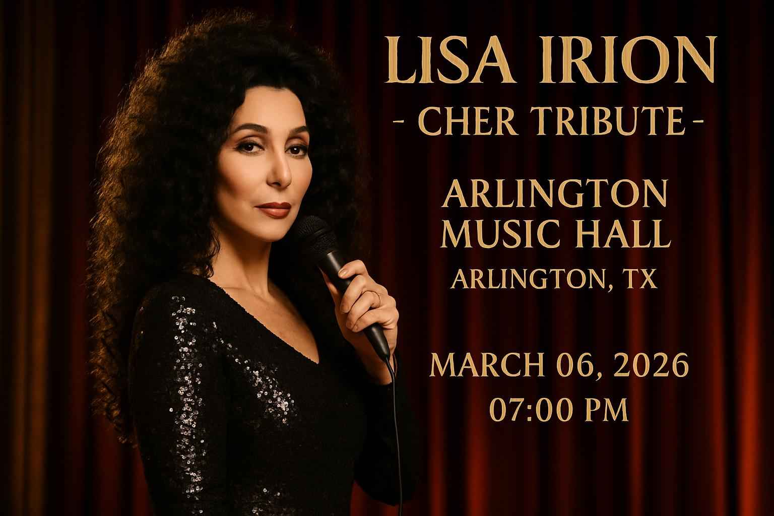 The Lisa Irion Cher Tribute takes place on March 6 2026 at 7 PM at Arlington Music Hall Arlington TX.