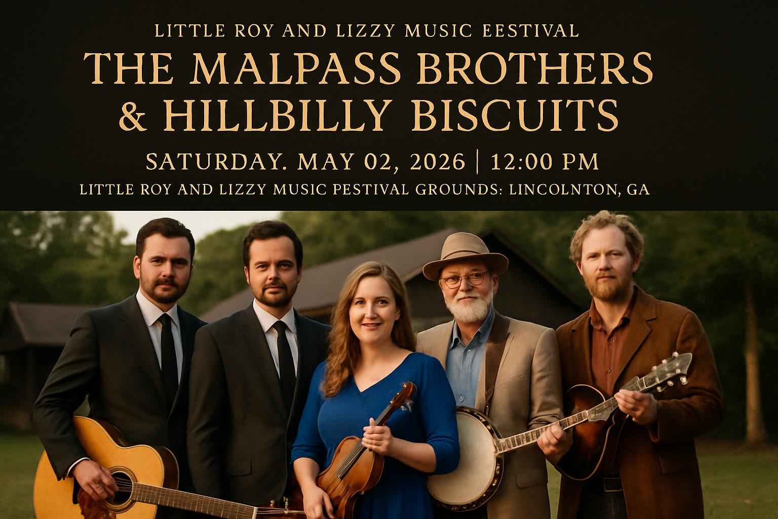Experience the best of bluegrass and Americana at the Little Roy and Lizzy Music Festival featuring The Malpass Brothers and Hillbilly Biscuits on Saturday May 2 2026 in Lincolnton GA. This highly anticipated event at the Little Roy and Lizzy Music Festival Grounds offers an unforgettable afternoon filled with live music family-friendly fun and local food vendors. Secure the best rates with exclusive coupon codes only available through RSVP Event Agency to maximize your savings and enhance your festival experience today.