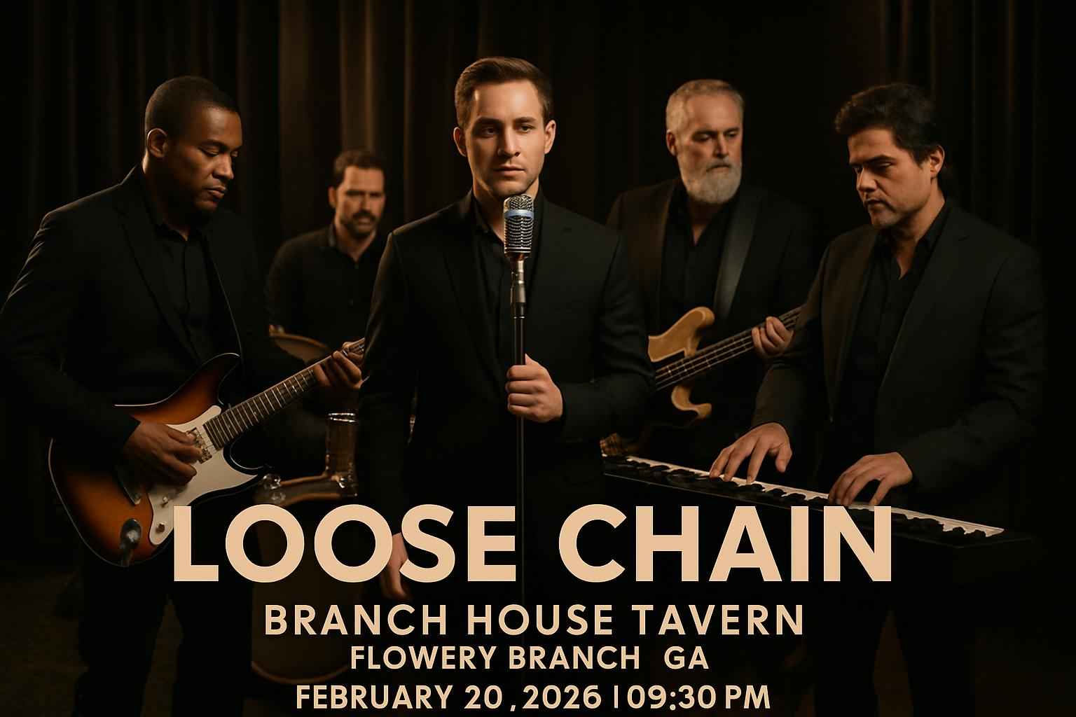 Loose Chain brings their signature sound to Branch House Tavern Flowery Branch GA for one night only. Doors open at 900 PM with music starting at 930 PM. Enjoy live entertainment at one of the most popular venues in Hall County. This event is perfect for local music fans and visitors looking for a top-rated nightlife experience in Flowery Branch GA.