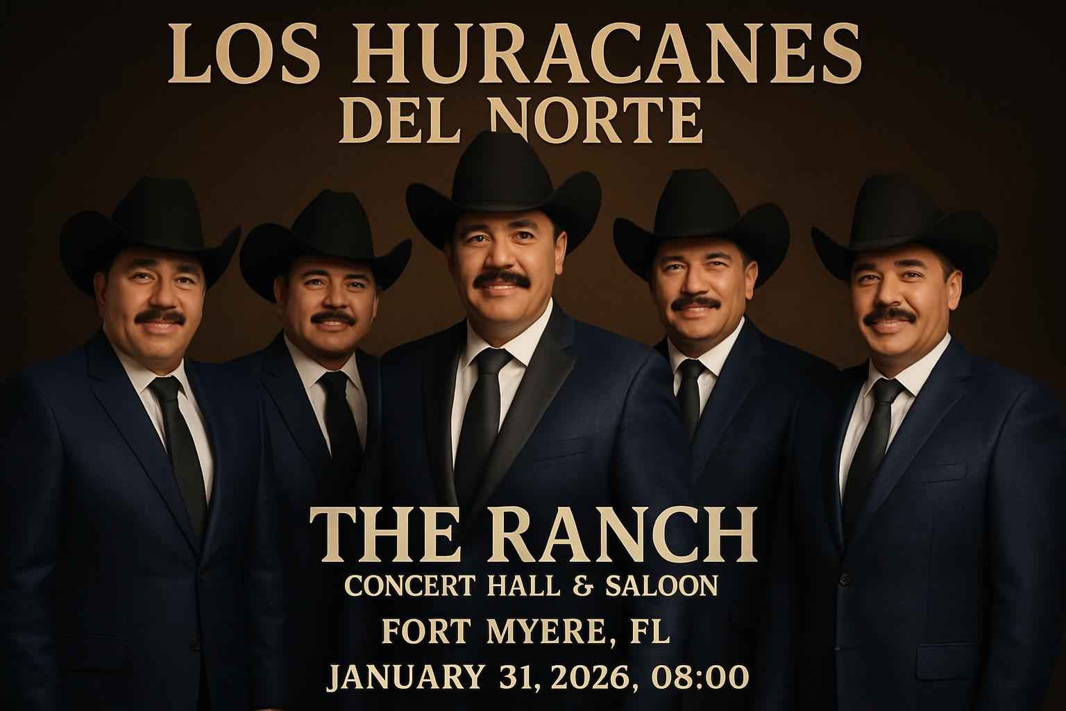 Los Huracanes del Norte perform live at The Ranch Concert Hall and Saloon in Fort Myers, FL, on January 31, 2026, at 8 PM. Secure discounted tickets with exclusive promo codes from RSVP Event Agency for verified savings. Enjoy premium sound, parking, and a vibrant Latin music experience. Early arrival is recommended for best seating and parking.