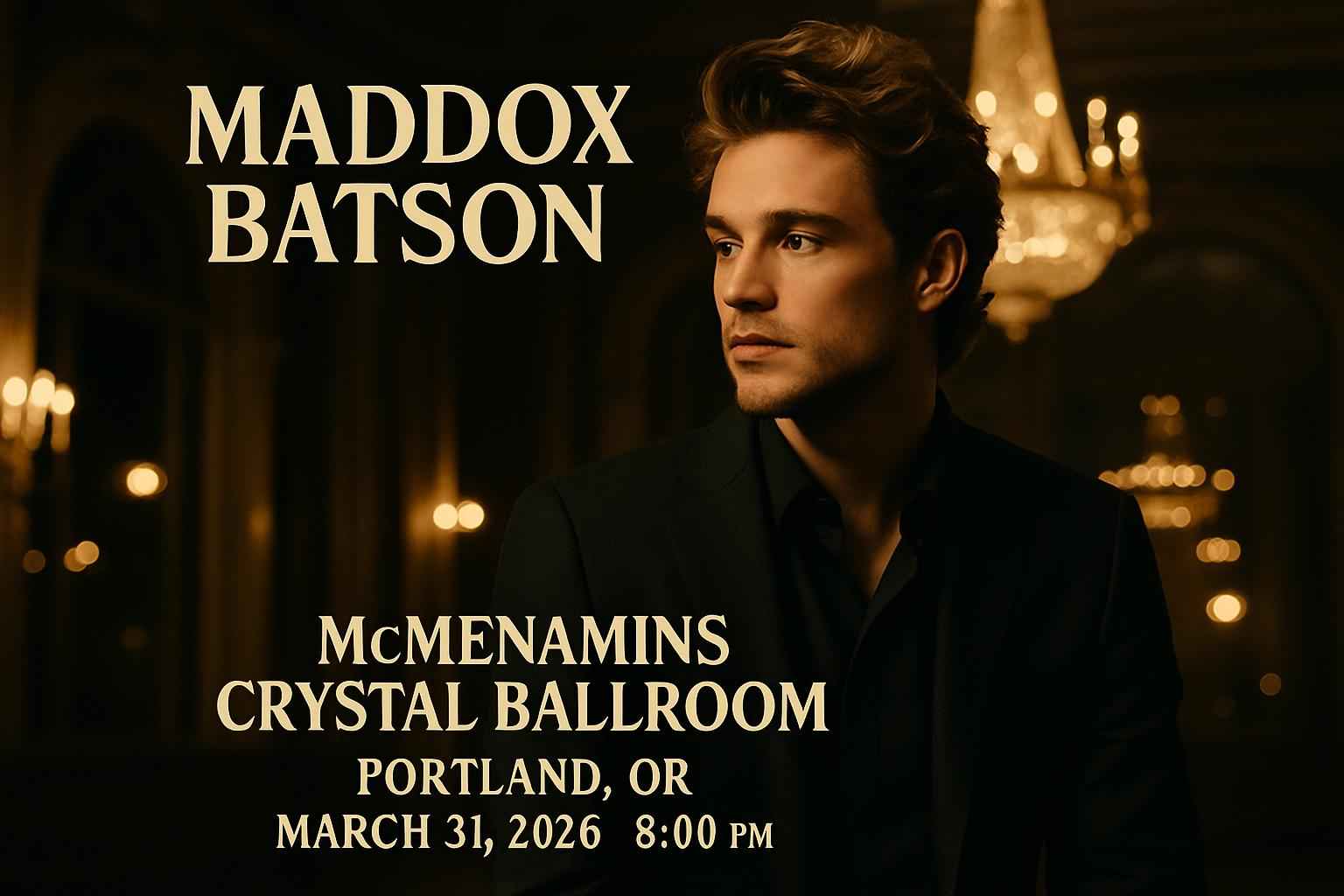 Maddox Batson takes the stage at McMenamins Crystal Ballroom located at 1332 W Burnside St Portland OR. This historic venue features outstanding acoustics and a unique floating dance floor making every concert an unforgettable experience. The performance starts at 8 PM on March 31 2026. Arrive early to explore nearby Pearl District restaurants and enjoy stress-free event parking.