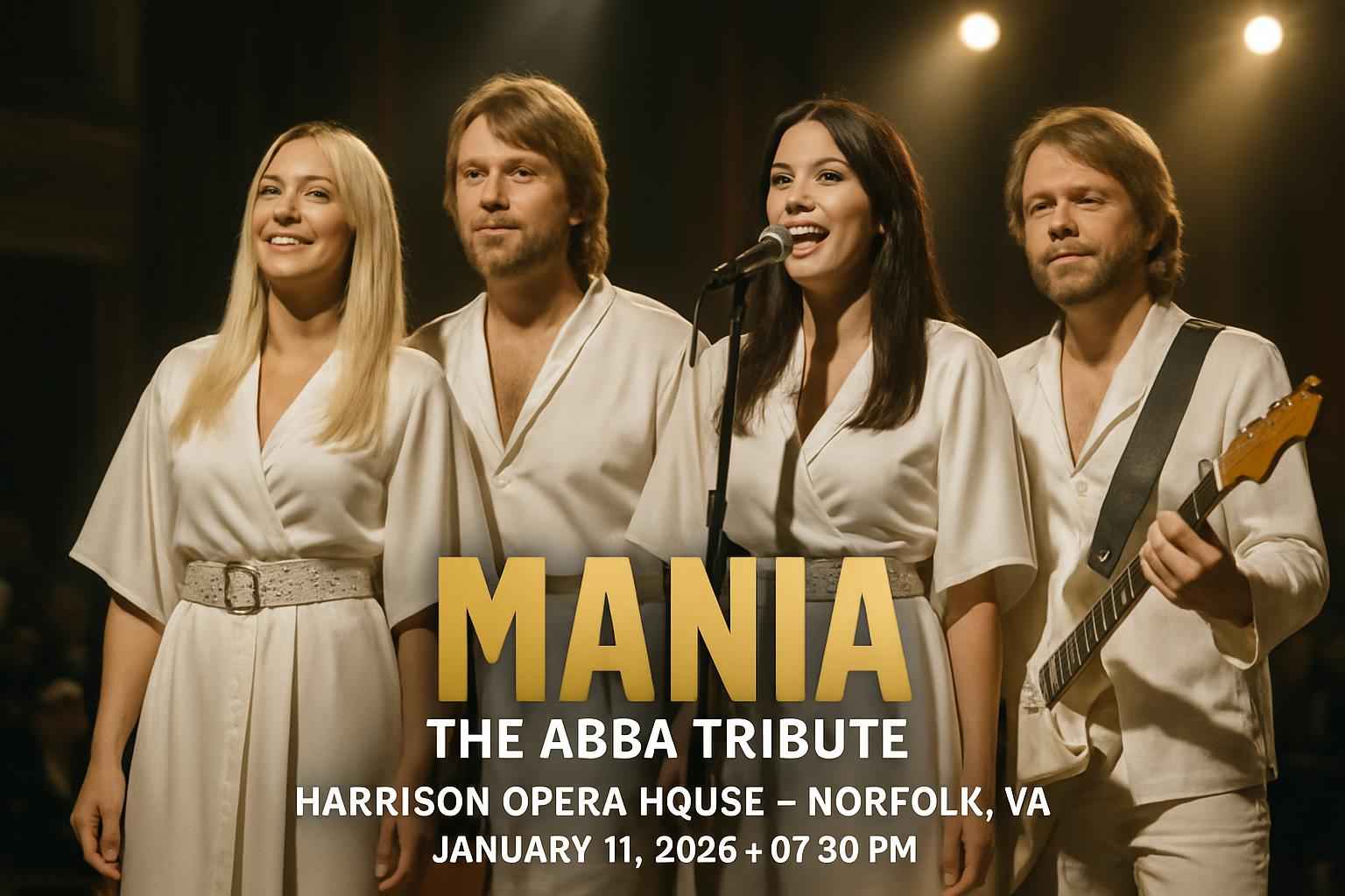 Mania – The ABBA Tribute brings the timeless music of ABBA to life with authentic costumes and stage effects at the Harrison Opera House in Norfolk. This event features dynamic renditions of Dancing Queen Waterloo and Mamma Mia attracting fans from across Virginia. The historic opera house offers premium acoustics and comfortable seating to enhance your concert experience.