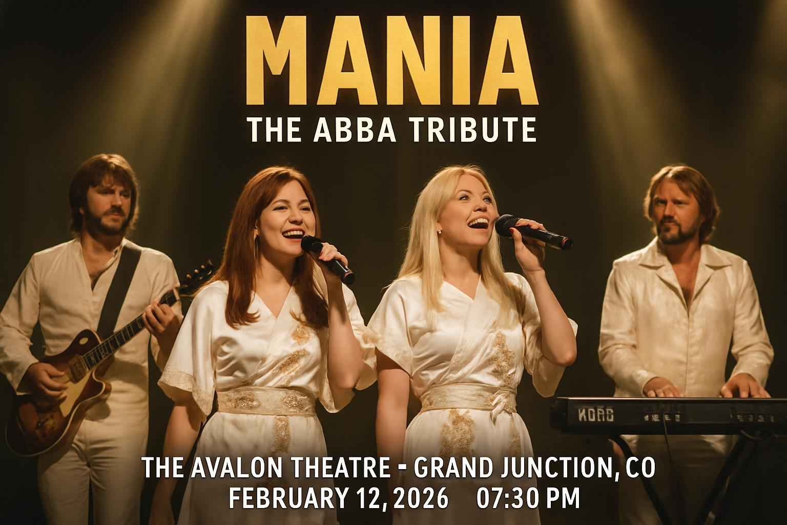 Mania – The ABBA Tribute begins at 0730 PM on Thursday February 12 2026 at The Avalon Theatre CO. Doors open one hour before showtime. Arrive early for the best parking and local dining options near Main Street Grand Junction. Check updates for potential schedule changes or Grand Junction weather advisories before heading to the event.