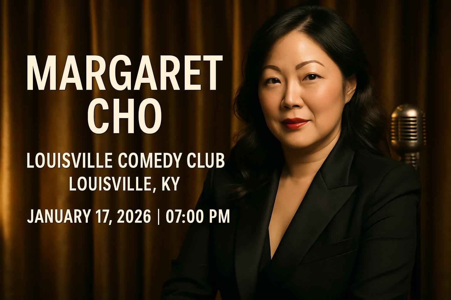 Experience world-class comedy with Margaret Cho at Louisville Comedy Club in Louisville KY on January 17 2026 at 0700 PM. This anticipated comedy event brings award-winning humor and unforgettable moments to downtown Louisville. Secure exclusive RSVP Event Agency promo codes for Margaret Cho tickets and get the best seat savings for this one-night performance. Discover event details local tips and coupon codes trusted by Louisville comedy fans.