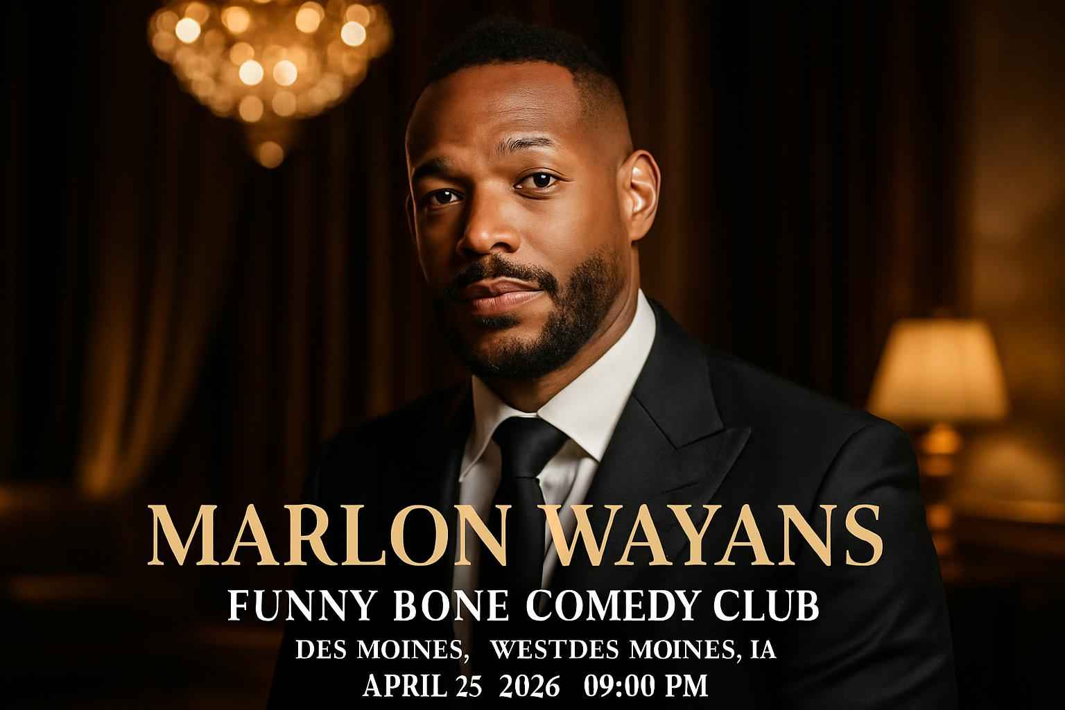 Marlon Wayans brings his signature humor and energy to the Funny Bone Comedy Club in West Des Moines IA for a one-night show on April 25 2026. The event starts at 9 PM and is expected to draw a full house of comedy lovers from Des Moines and nearby cities. The Funny Bone venue is known for hosting leading comedians and offers a vibrant atmosphere for stand-up shows. Secure your spot at this exclusive event and take advantage of high-intent ticket deals through RSVP Event Agency.