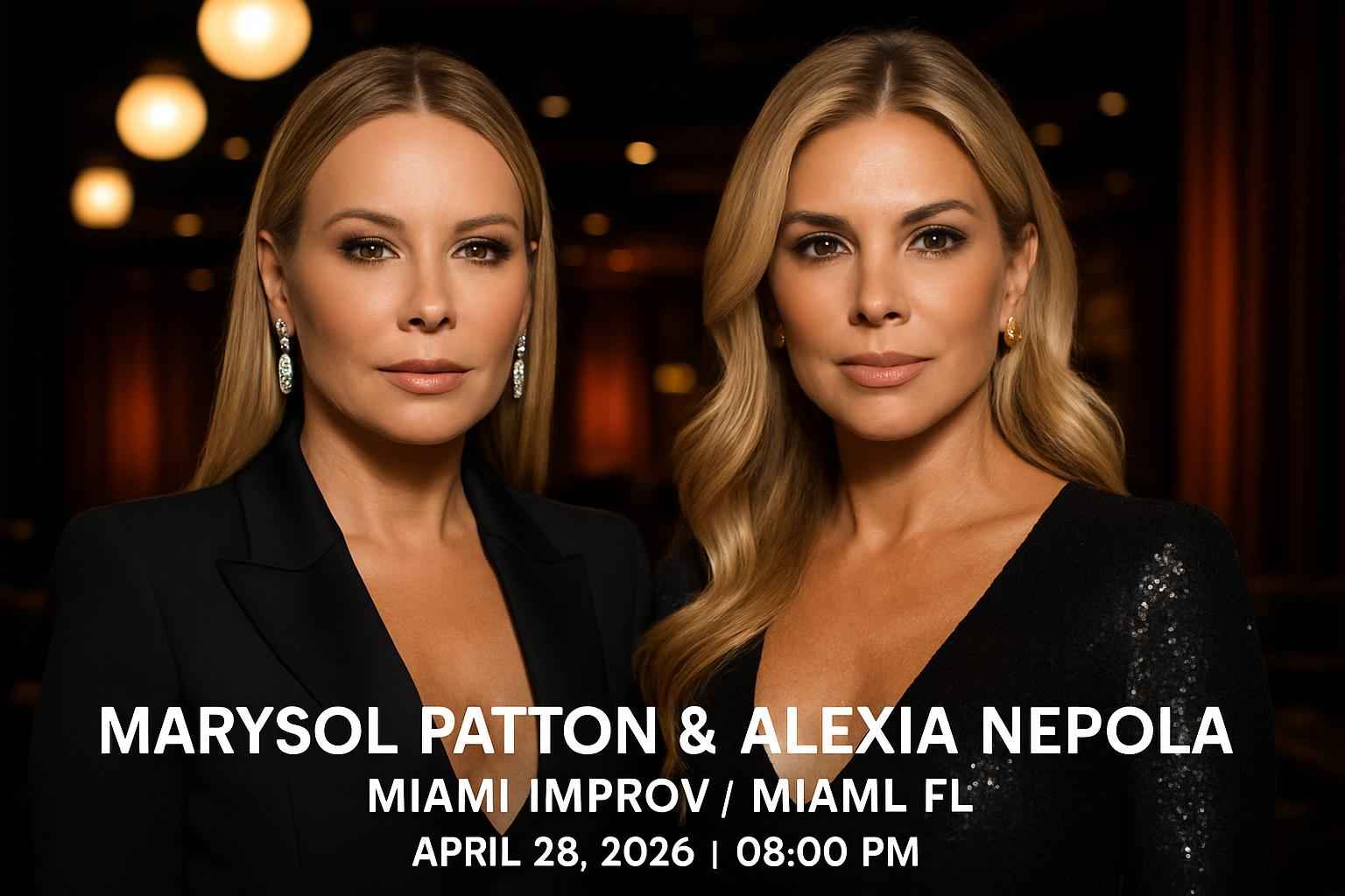 Marysol Patton and Alexia Nepola bring star power to Miami Improv on April 28 2026 at 8 PM Their live event delivers authentic stories and laughter straight from Bravo TV personalities The Miami Improv venue in Miami FL is centrally located near top restaurants and nightlife making it the perfect spot for an evening of entertainment