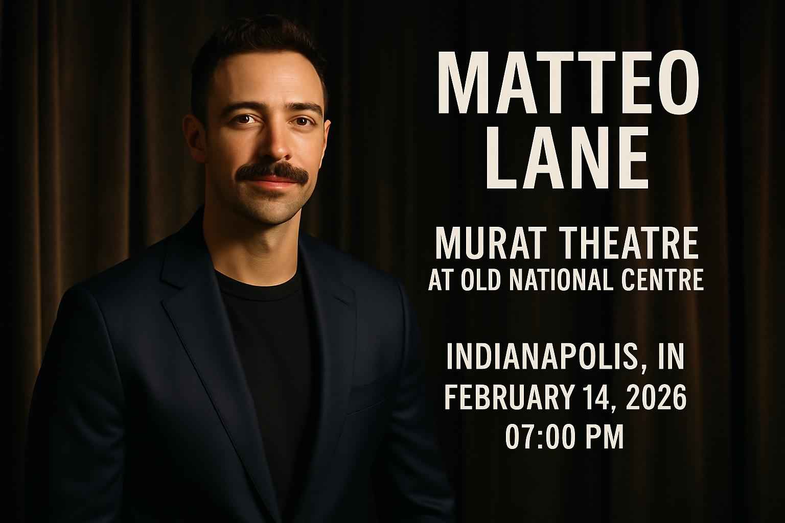 The Matteo Lane show begins at 7:00 PM on February 14 2026 with doors opening at 6:00 PM for early entry and seating at Murat Theatre in Indianapolis.