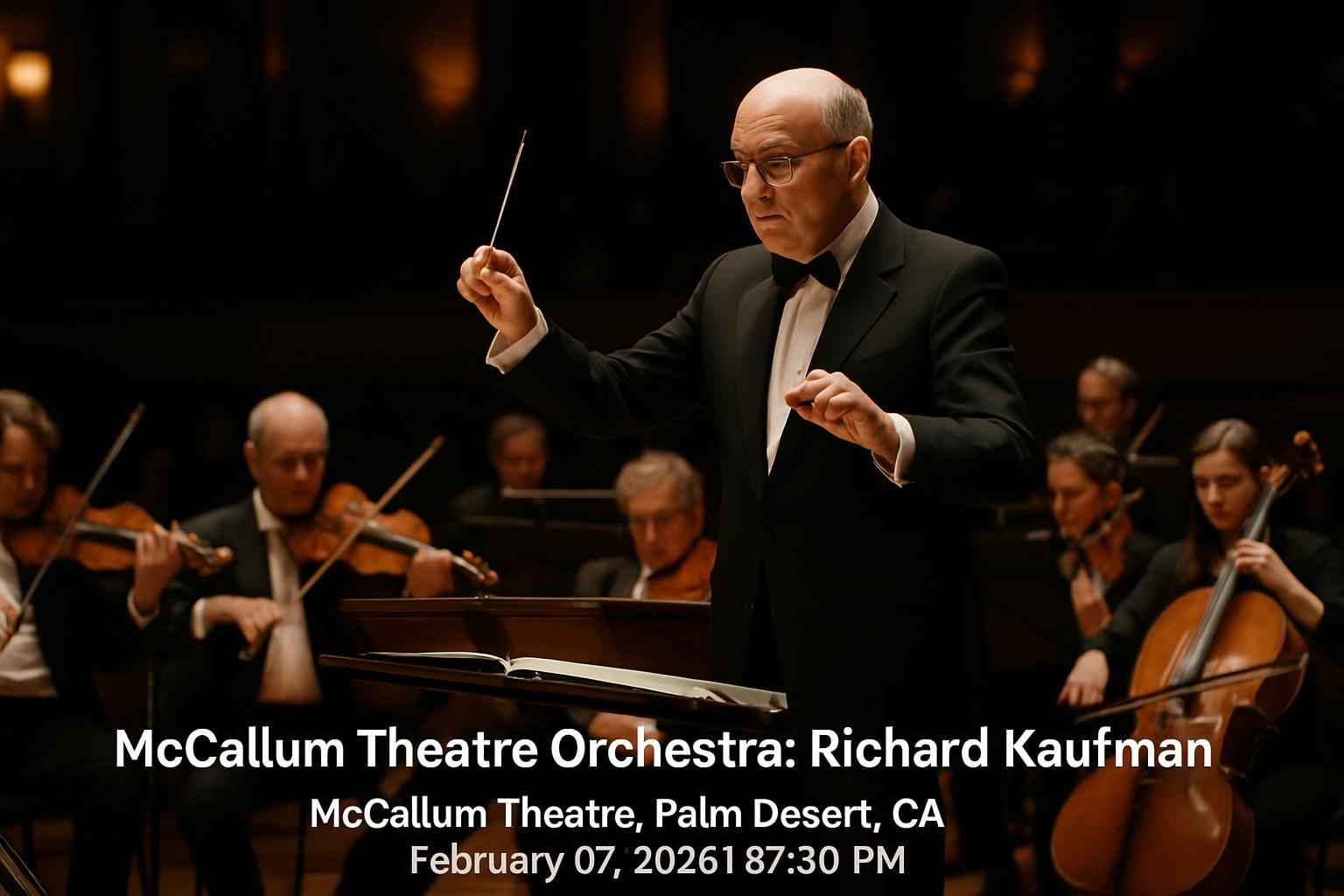 Join acclaimed conductor Richard Kaufman and the renowned McCallum Theatre Orchestra for an unforgettable live performance at McCallum Theatre. The concert begins at 0730 PM on February 07 2026 delivering a blend of classical and contemporary orchestral favorites. The theatre is located in the heart of Palm Desert CA and offers premium acoustics and comfortable seating. Early ticket access and last-minute ticket promo codes are available through RSVP Event Agency.