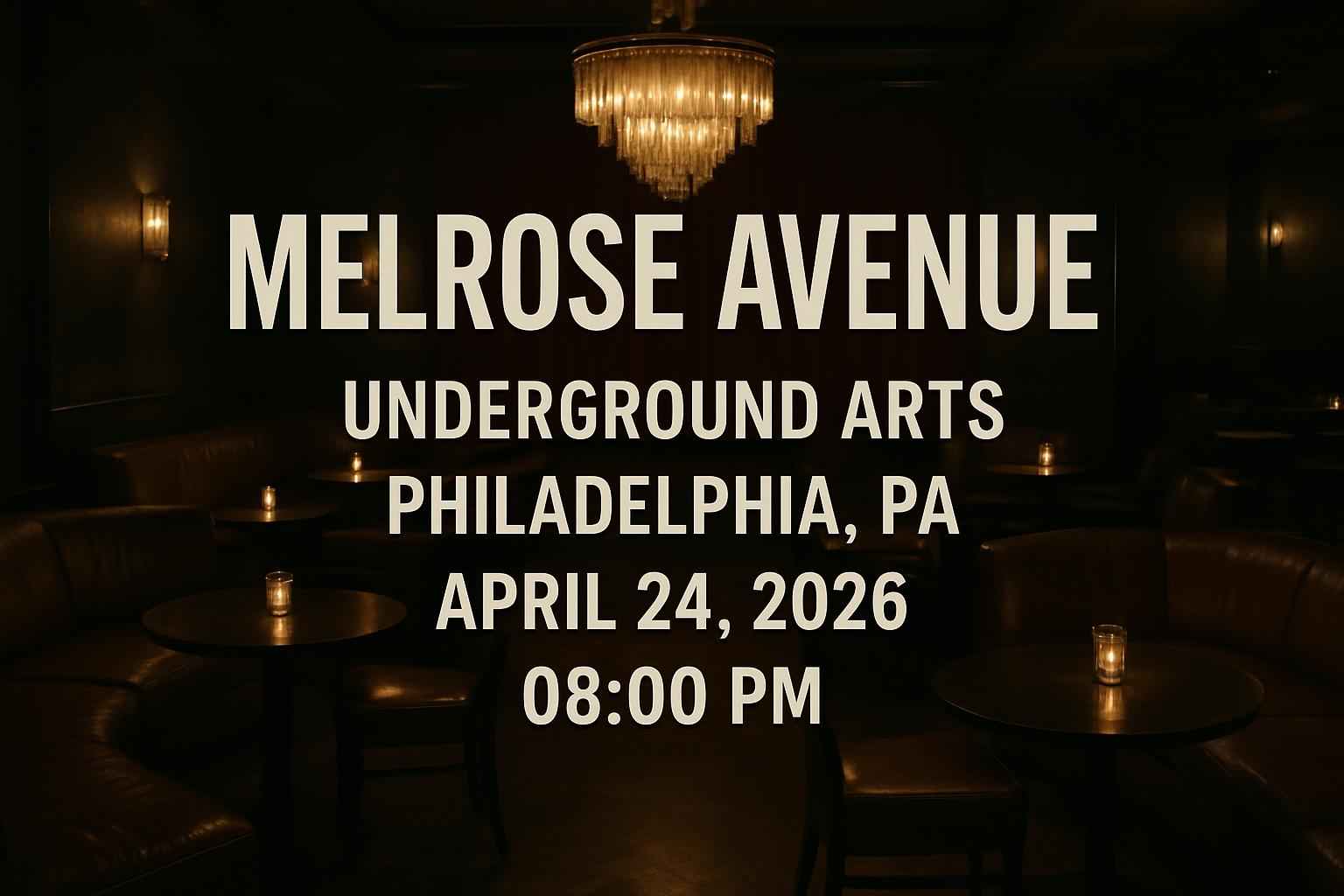 Underground Arts is located in the Callowhill neighborhood providing easy access from downtown Philadelphia. Paid parking garages and street parking are available nearby. The venue is accessible by SEPTA bus and rail lines making travel convenient for all attendees. Arrive early to explore local dining options before the Melrose Avenue concert.