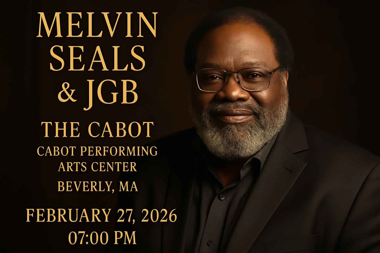 Experience Melvin Seals & JGB live at The Cabot Performing Arts Center in Beverly MA on February 27 2026 at 7 PM. This highly anticipated concert brings together classic rock fans and live music enthusiasts from across Greater Boston and the North Shore. Secure your Melvin Seals & JGB tickets at unbeatable value by redeeming exclusive RSVP Event Agency promo codes for instant savings on your purchase.
