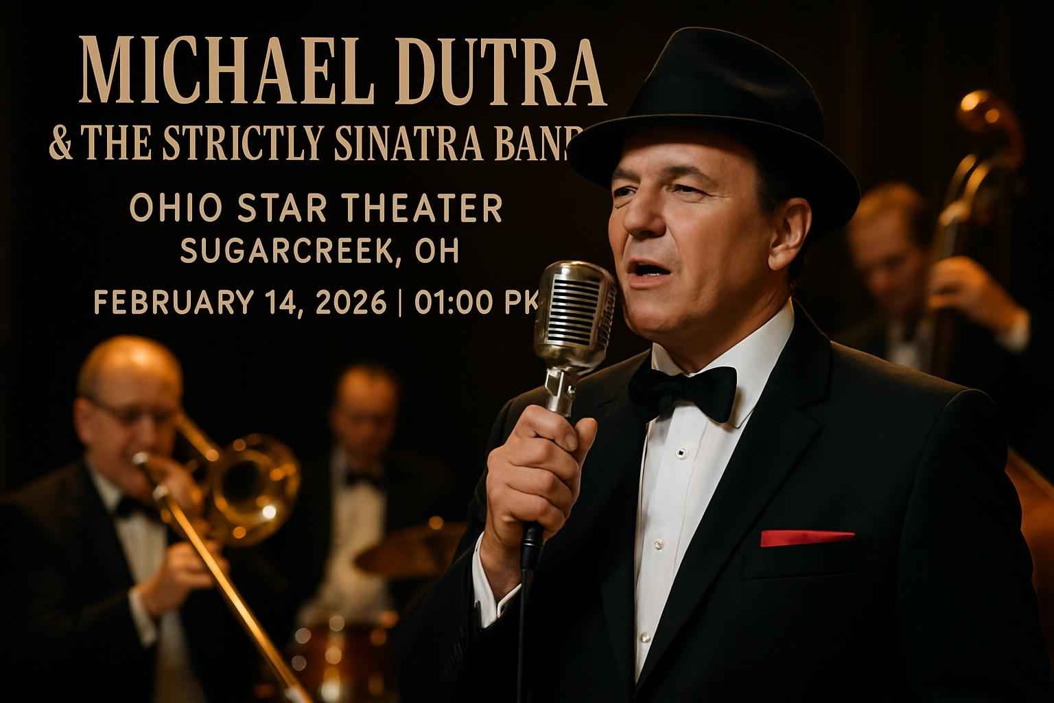 Celebrate Valentine’s Day with Michael Dutra & The Strictly Sinatra Band at Ohio Star Theater, Sugarcreek, on February 14, 2026, 1 PM. Enjoy live Sinatra classics with convenient parking and nearby dining. Secure tickets via RSVP Event Agency for exclusive promo codes and verified discounts. Doors open at 12 PM; book early for the best seats and savings.
