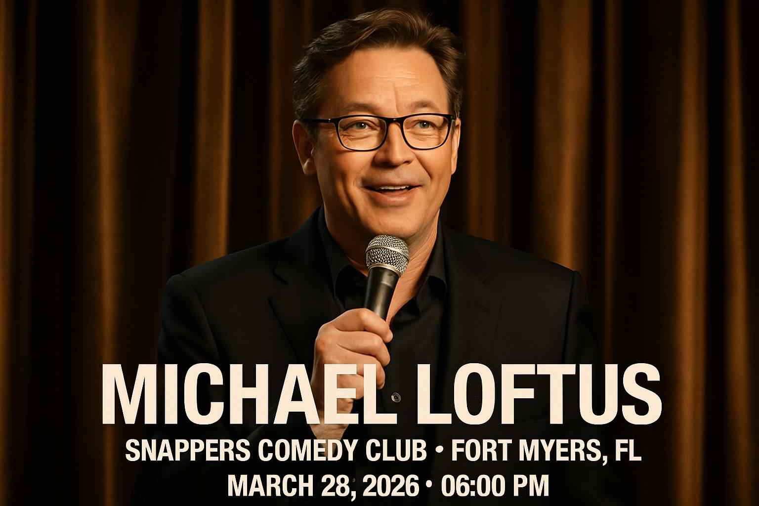 Michael Loftus brings high-energy stand-up and sharp comedy to Snappers Comedy Club in Fort Myers FL. The show starts at 6 PM on March 28 2026. Doors open early for ticket holders to enjoy food and drinks before the performance. Parking is easy and the club offers a welcoming atmosphere for all ages. Grab your tickets and access exclusive event promotions now.