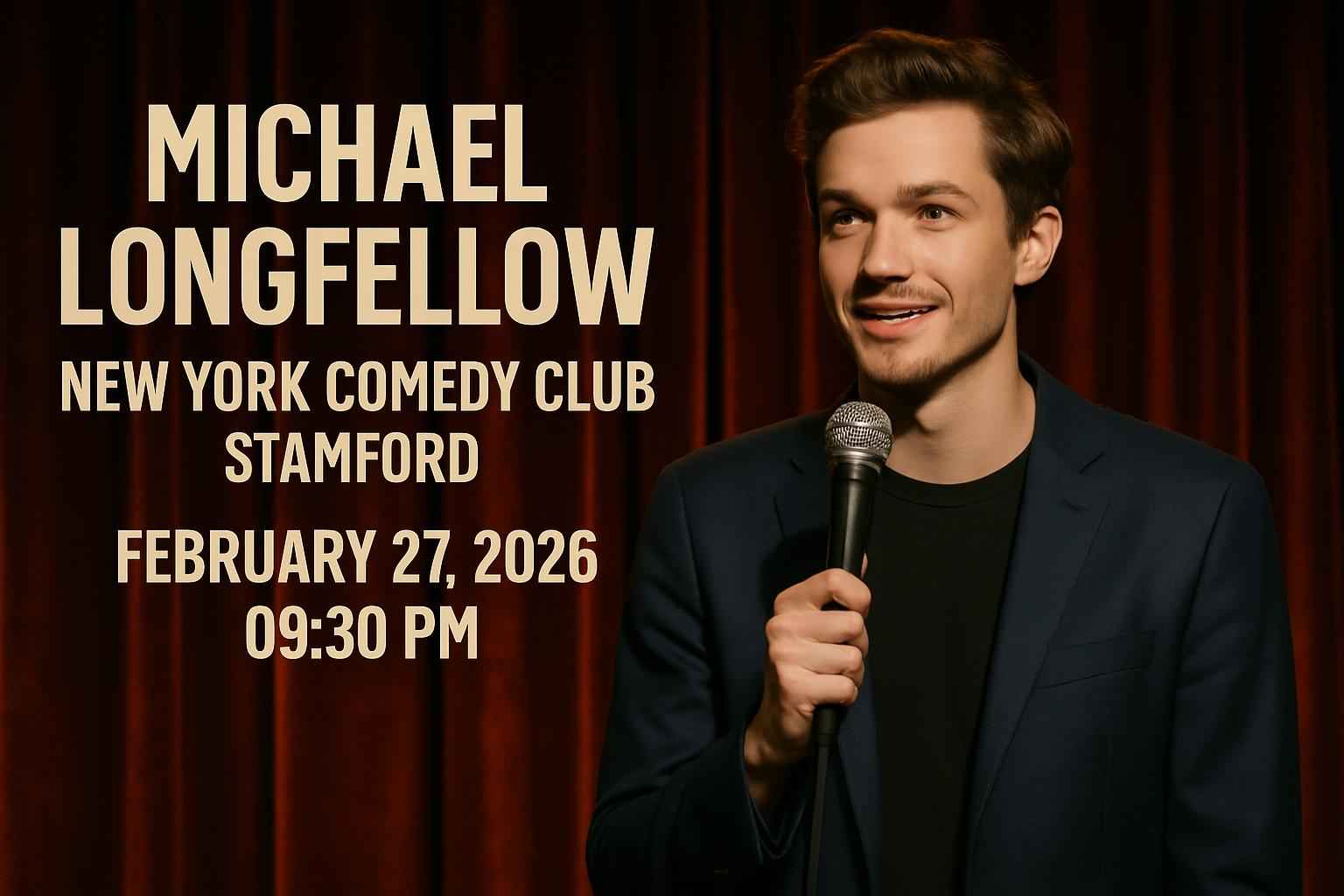 Experience Michael Longfellow live at New York Comedy Club Stamford on February 27, 2026, at 9:30 PM. Secure tickets with exclusive RSVP Event Agency promo codes for premium seats and savings. Enjoy a top comedy night with verified discounts, easy parking, and local support. Arrive early for the best experience at this highly anticipated Stamford event.