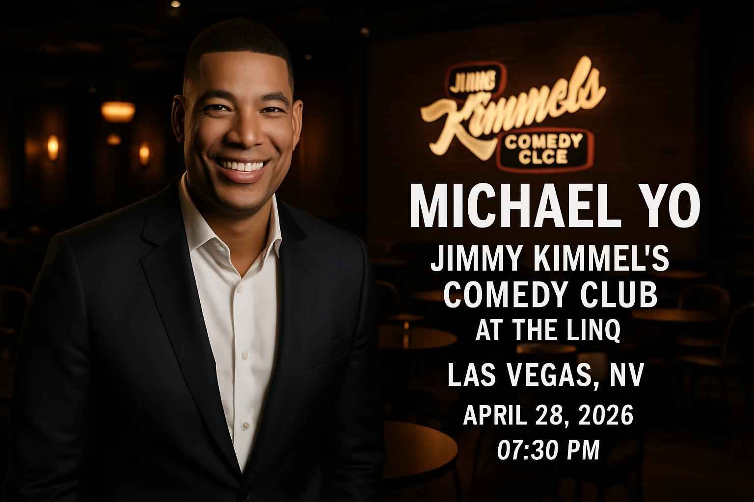 Experience top-tier stand-up with Michael Yo at Jimmy Kimmels Comedy Club at the LINQ in Las Vegas NV on April 28 2026 at 0730 PM. This one-night event features Michael Yos signature humor in the vibrant heart of the Las Vegas Strip. Secure the best seats with exclusive RSVP Event Agency promo codes and enjoy unbeatable value for your night out in Las Vegas.