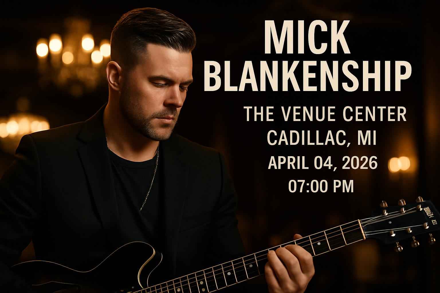 Mick Blankenship brings his dynamic stage presence to The Venue Event Center for a one-night-only event. This Cadillac concert draws fans from across Michigan eager for a memorable live music experience. Find all event details including venue location showtime and special guest announcements. Discover why Cadillac MI is the top destination for live rock concerts in 2026.