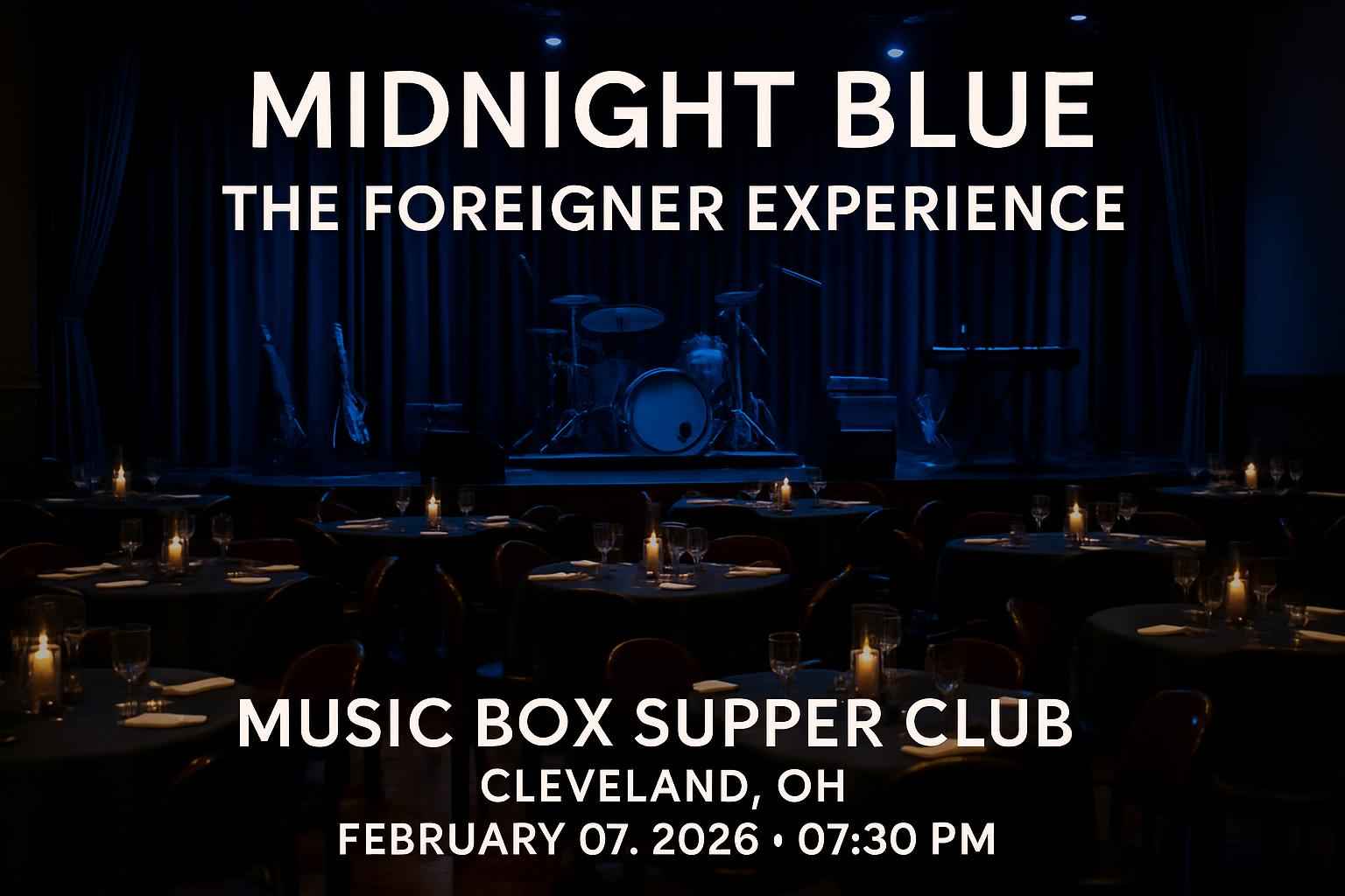 Midnight Blue – The Foreigner Experience is a tribute concert celebrating the legendary rock band Foreigner with live performances of their biggest hits at Music Box Supper Club in Cleveland OH.