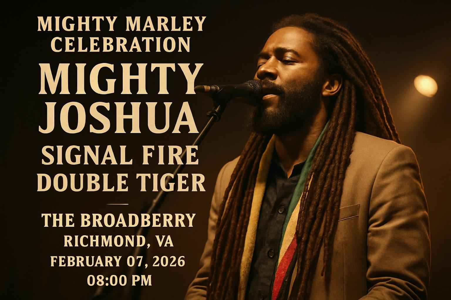 Experience the power of reggae music in Richmond at the Mighty Marley Celebration featuring Mighty Joshua, Signal Fire, and Double Tiger at The Broadberry on February 07, 2026 at 8:00 PM. Secure the best event promo codes and exclusive discounts with RSVP Event Agency, your trusted source for verified coupon codes and local event savings. Join reggae fans across Virginia in celebrating this legendary night and take advantage of top deals for a memorable Richmond concert experience.