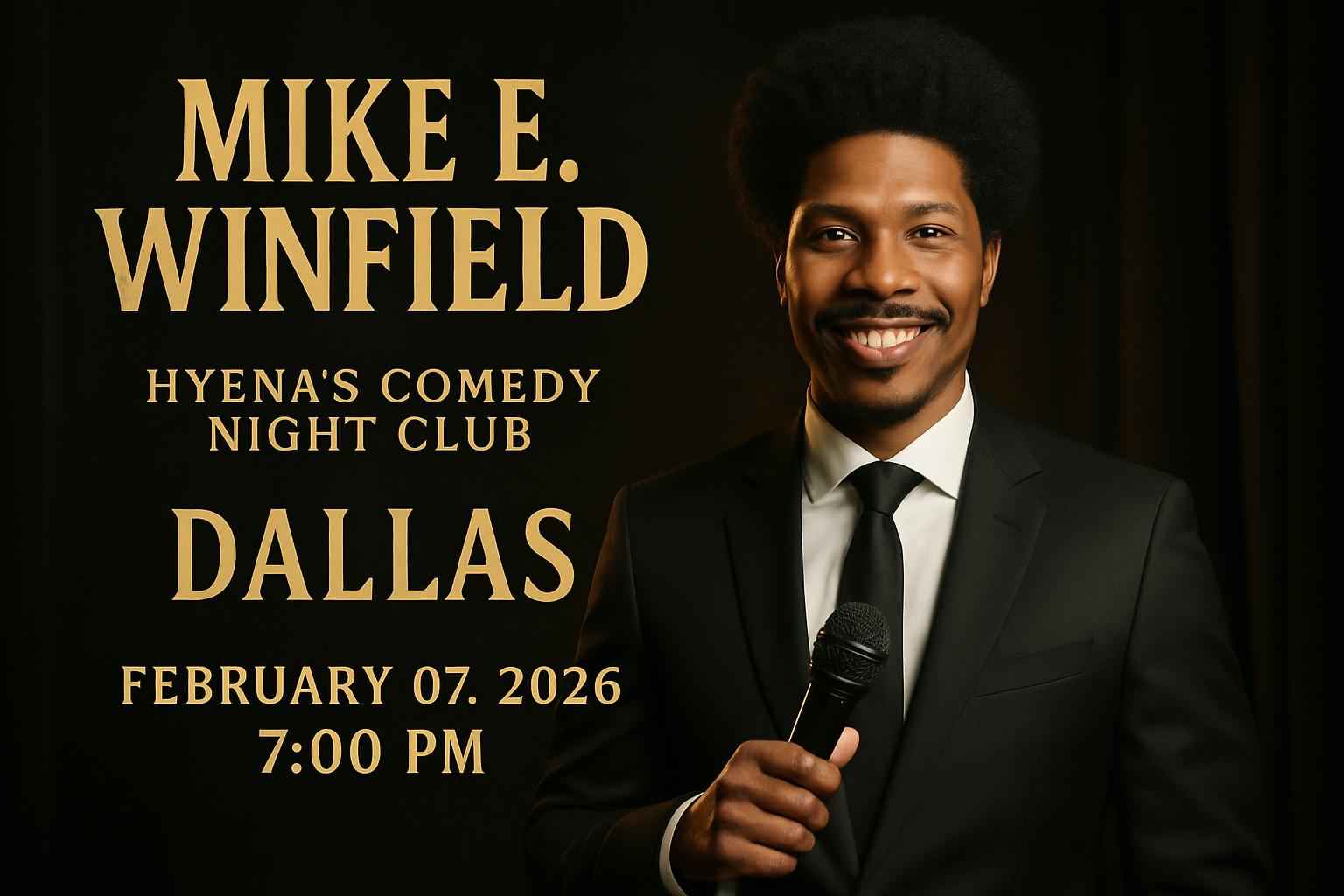 Experience Mike E Winfield live at Hyenas Comedy Night Club Dallas on February 7, 2026, at 7 PM. Secure discounted tickets using exclusive RSVP Event Agency promo codes for the best savings. Enjoy an intimate venue with convenient parking, a full bar, and top-tier comedy. Arrive early for prime seating and a memorable night of laughter.
