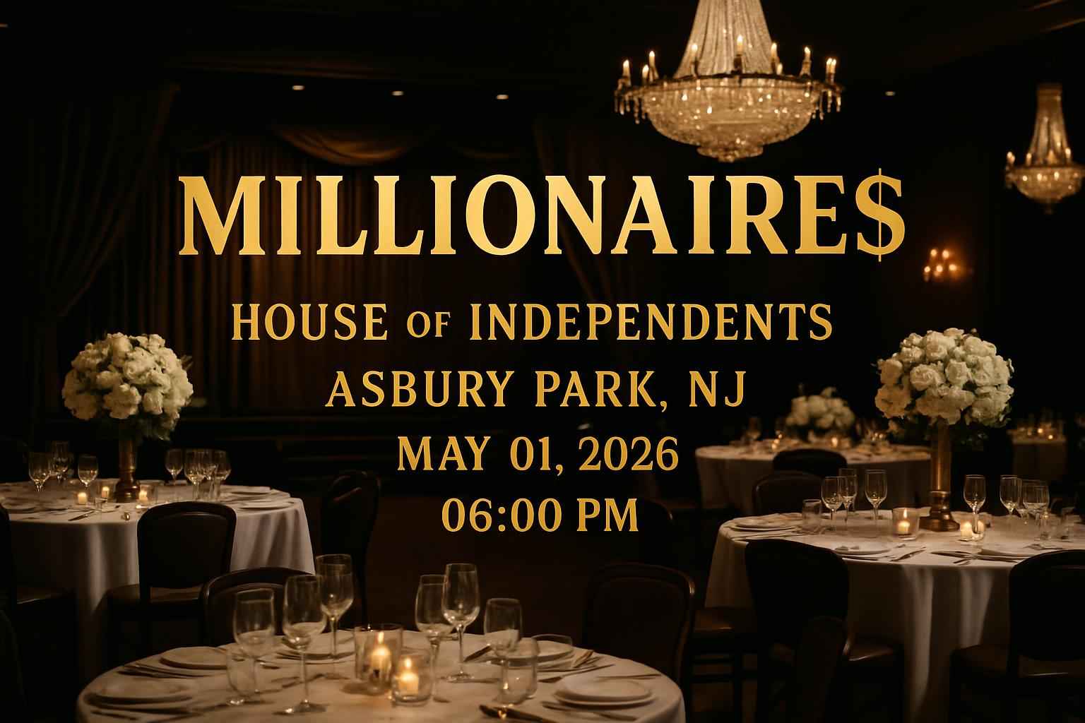 Experience Millionaire$ at House of Independents in Asbury Park NJ on May 01 2026 at 6 PM This live event draws music fans and entertainment seekers across Monmouth County for a unique night in one of the citys top concert venues Secure exclusive coupon codes and verified promo discounts now through RSVP Event Agency to guarantee the lowest ticket prices and best seats