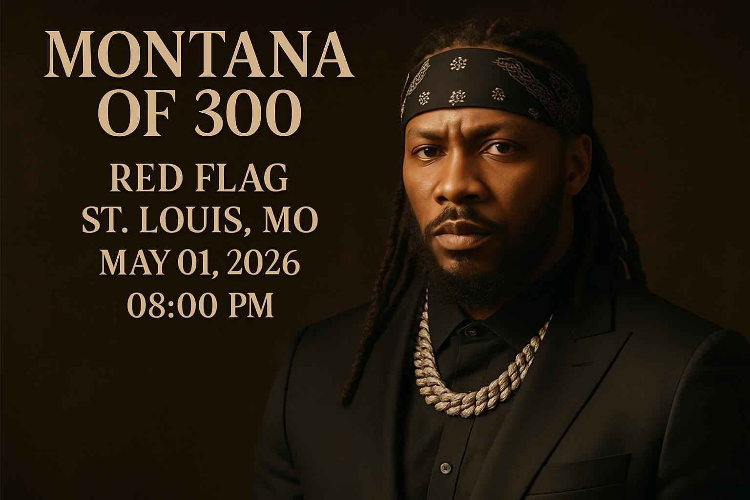Montana of 300 brings his chart-topping tracks and dynamic performance style to Red Flag located at 3040 Locust Street St. Louis MO. The show starts at 8 PM on Friday May 01 2026. Expect an electrifying atmosphere and top-tier sound with limited VIP and general admission tickets. Arrive early for the best experience and take advantage of downtown St. Louis parking options.