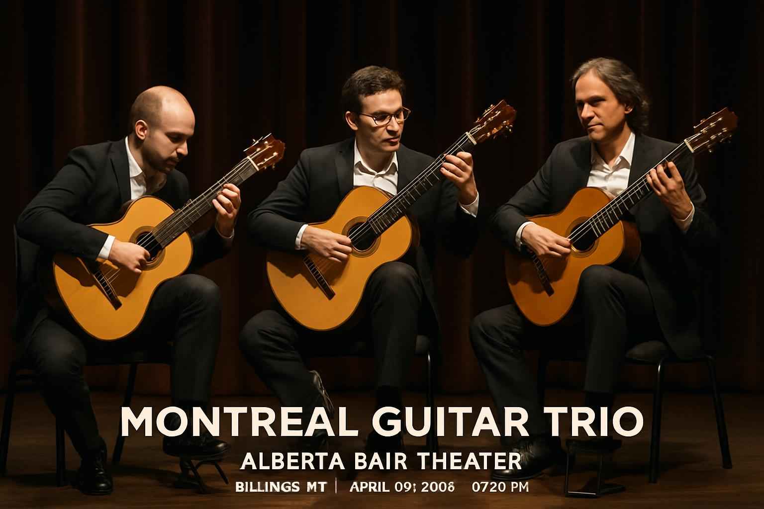 Experience the renowned Montreal Guitar Trio at the Alberta Bair Theater in Billings MT on April 04 2026 at 0730 PM. Discover a world-class guitar performance blending classical jazz and world music genres. Secure exclusive coupon codes and promo savings for Montreal Guitar Trio tickets with RSVP Event Agency. Join music lovers and create unforgettable memories at Billings leading performing arts venue.