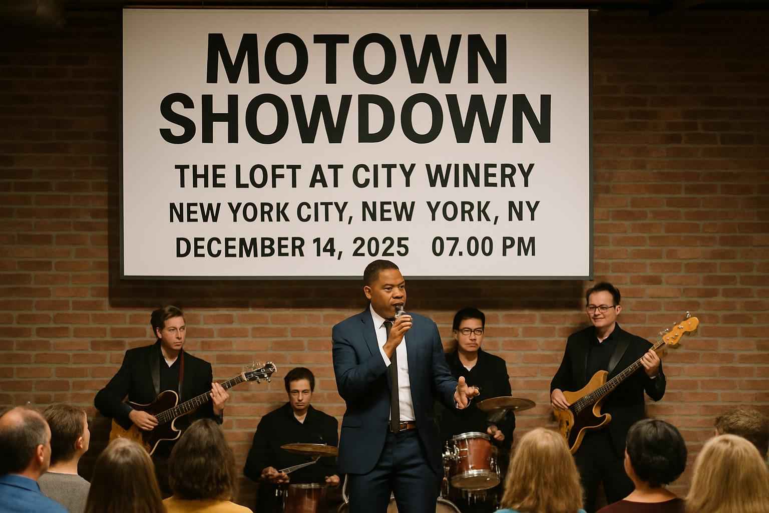 Motown Showdown begins at 7:00 PM on December 14, 2025 at The Loft At City Winery in New York City. Doors typically open at 6:00 PM for early seating and pre-show dining.